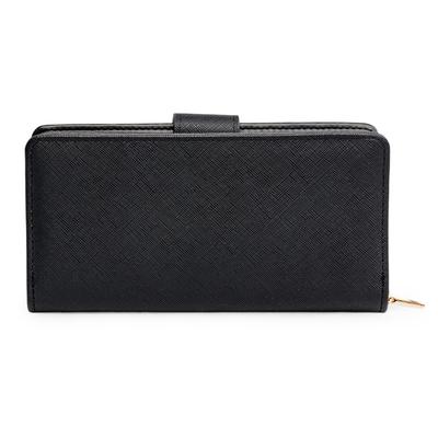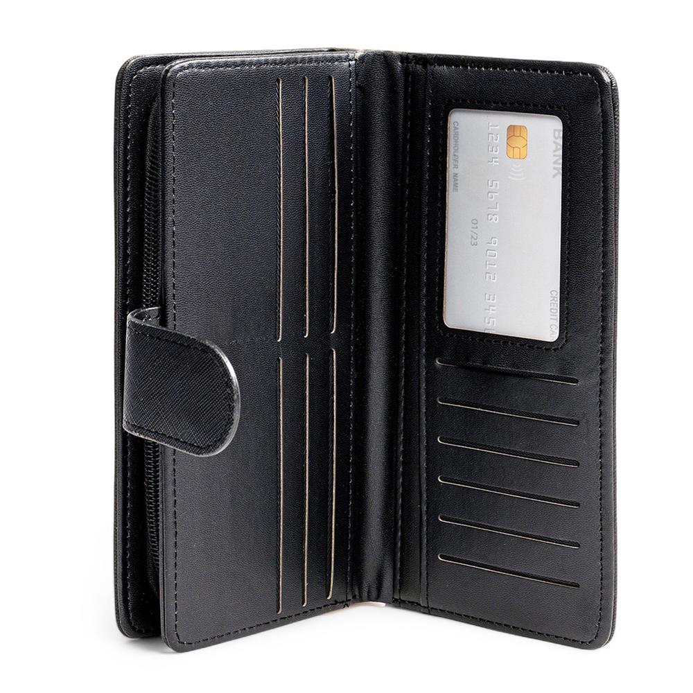 Cartera para mujer que combina elegancia y practicidad con un diseño texturizado que resalta en cualquier ocasión. Cuenta con compartimento con zipper para mayor seguridad, cierre con broche que mantiene todo protegido y ranuras para tarjetas que facilitan la organización de tus esenciales. Un accesorio funcional y sofisticado para llevar contigo siempre.
