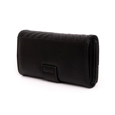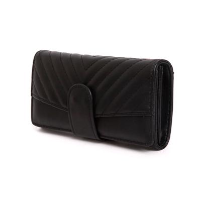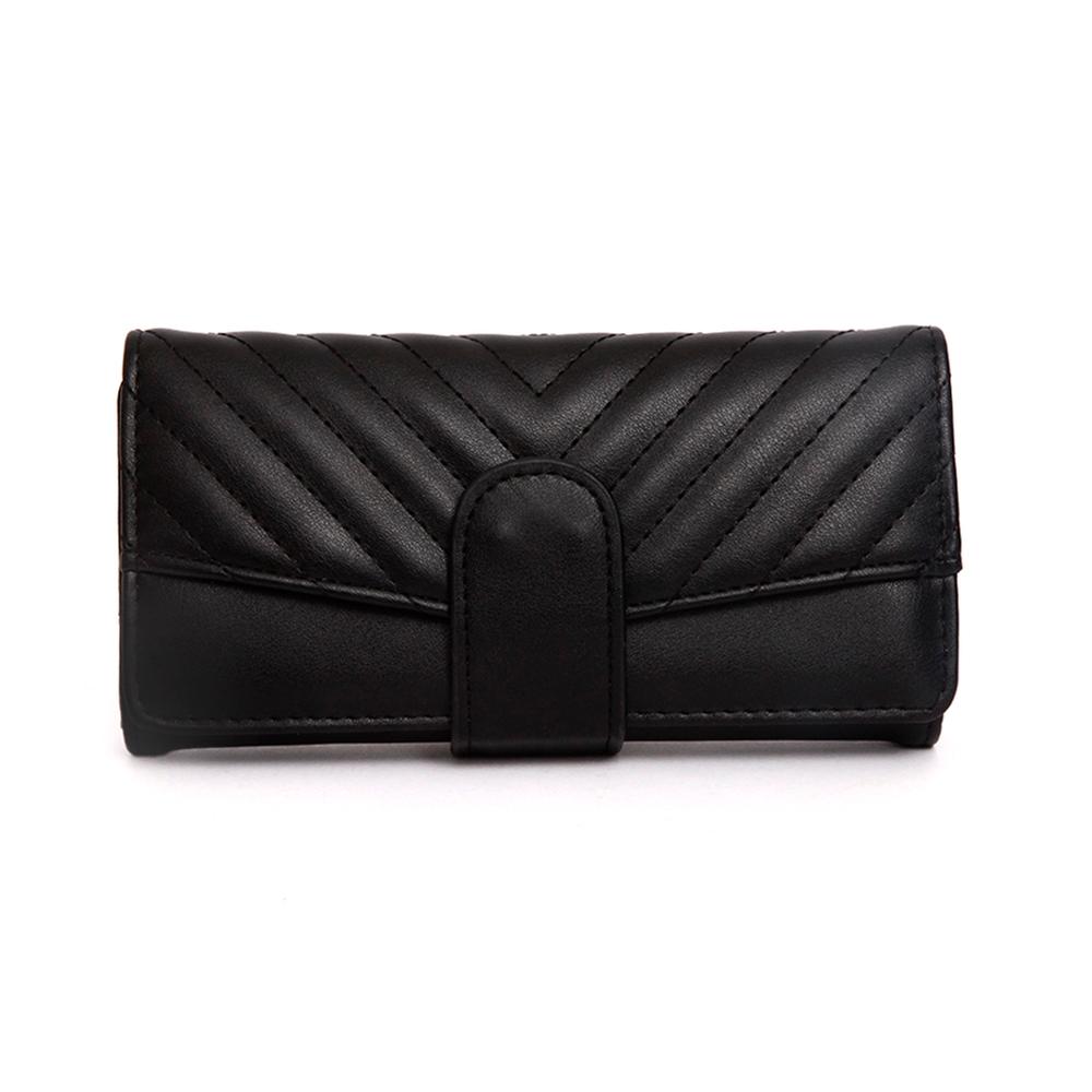 Esta cartera para mujer destaca por su diseño acanalado que aporta elegancia y textura, perfecta para complementar cualquier estilo. Cuenta con un broche frontal que asegura el cierre de manera práctica y segura, mientras que sus compartimentos internos ofrecen organización eficiente para tus objetos personales. Ideal para quienes buscan funcionalidad sin perder el estilo.