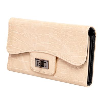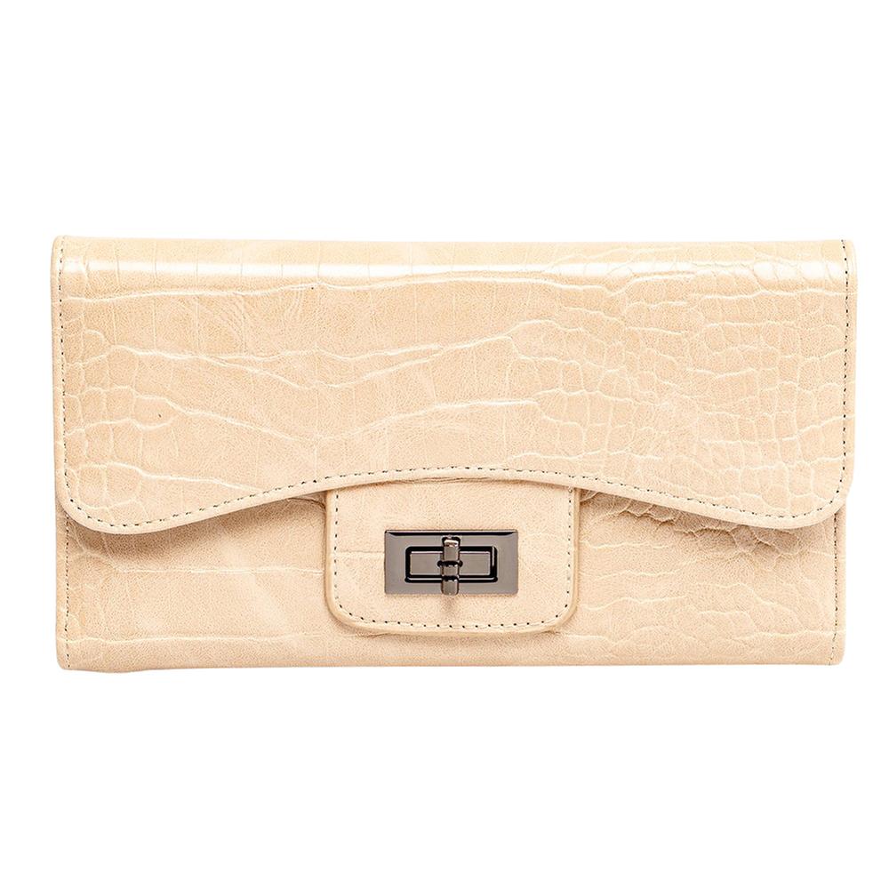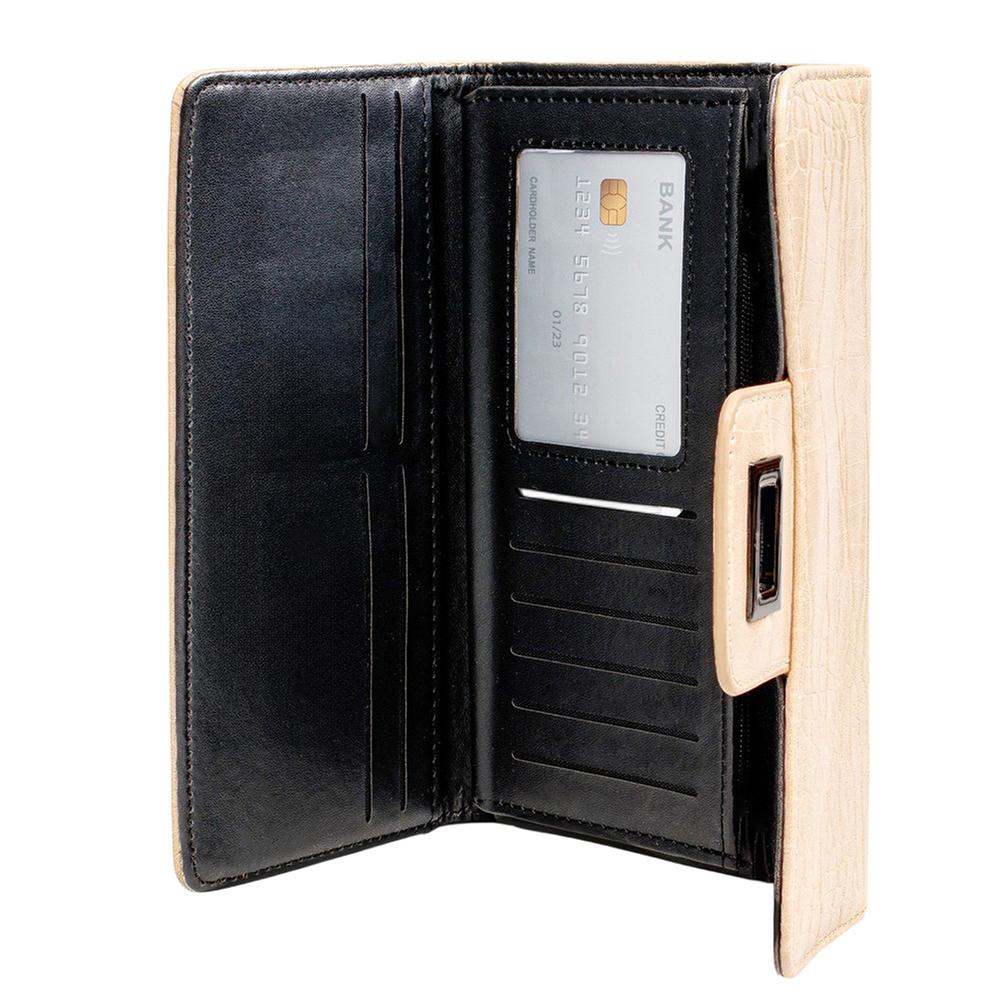 Cartera para mujer con diseño texturizado que aporta un toque sofisticado y moderno, ideal para complementar cualquier estilo. Su cierre con broche garantiza la seguridad de tus pertenencias mientras las ranuras para tarjetas permiten mantener todo organizado y al alcance. Perfecta para llevar lo esencial con elegancia y practicidad.