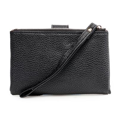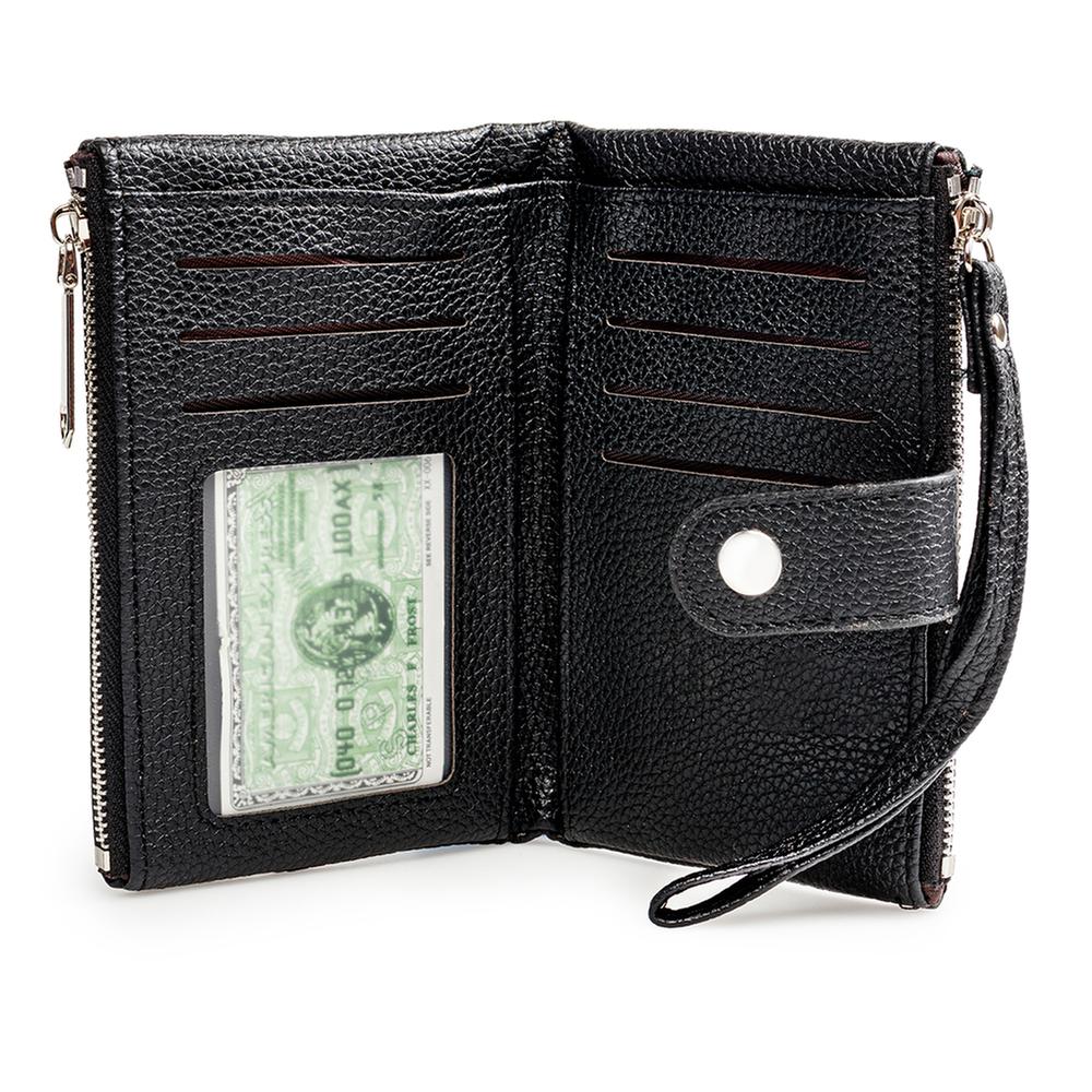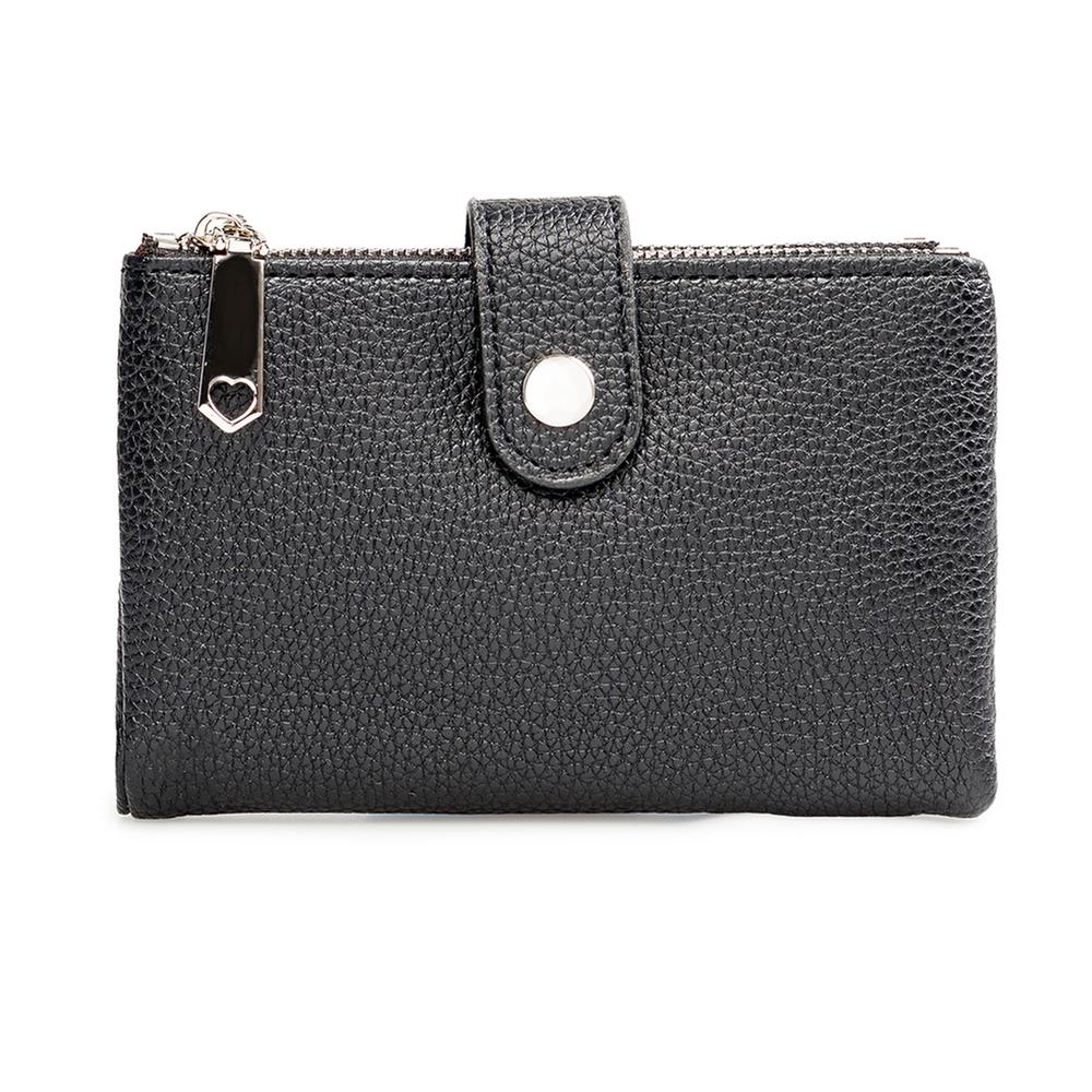 Esta cartera ofrece un diseño con textura que aporta elegancia y estilo mientras mantiene tus tarjetas organizadas en sus múltiples ranuras. Cuenta con un cierre con broche que garantiza seguridad y un compartimento con zipper para mayor practicidad al guardar tus objetos personales.