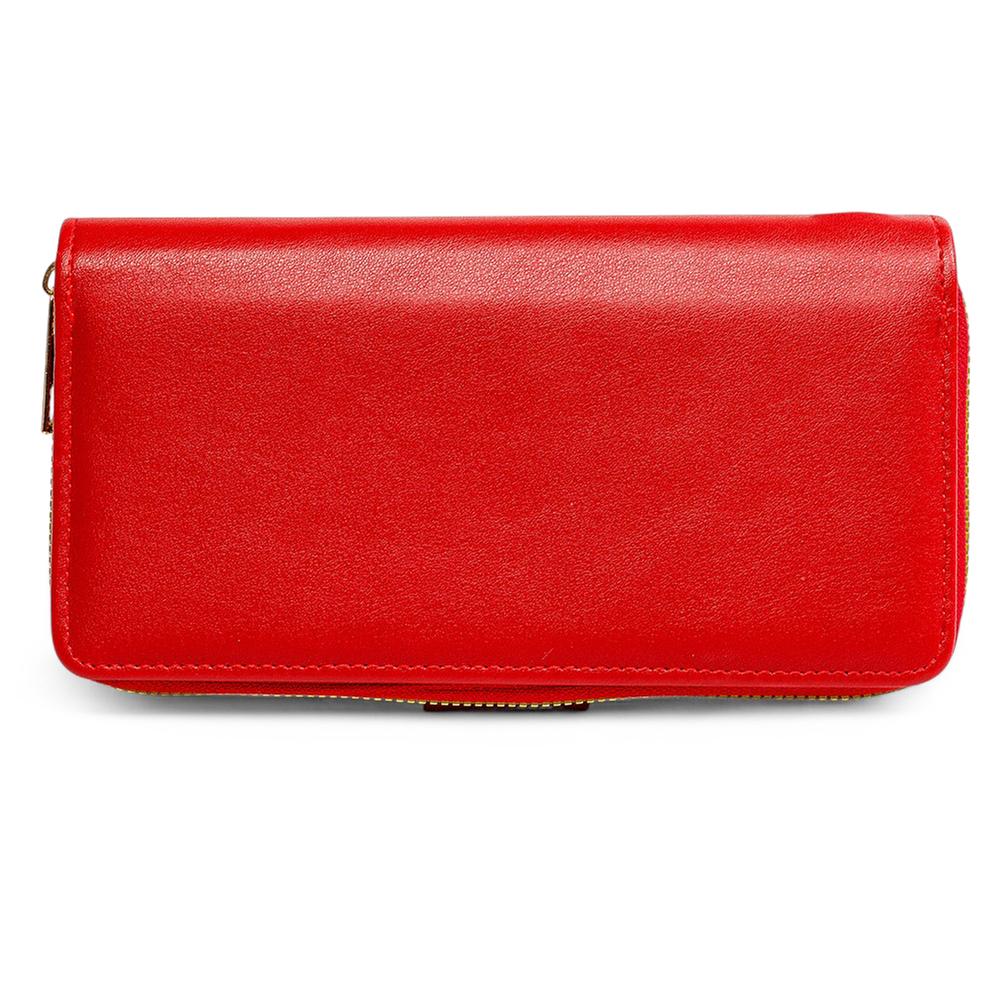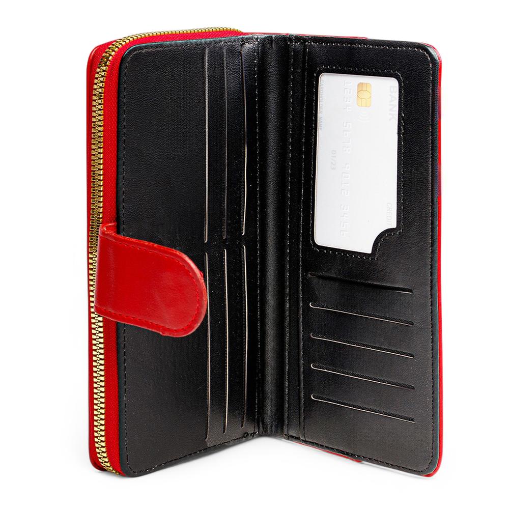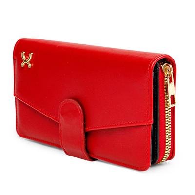 Esta cartera para mujer combina un diseño liso con un elegante detalle en contraste que realza su estilo sofisticado. Cuenta con un compartimento con zipper para mayor seguridad y cierre con broche que garantiza un uso práctico. Además, sus ranuras para tarjetas permiten una organización cómoda y funcional para el día a día