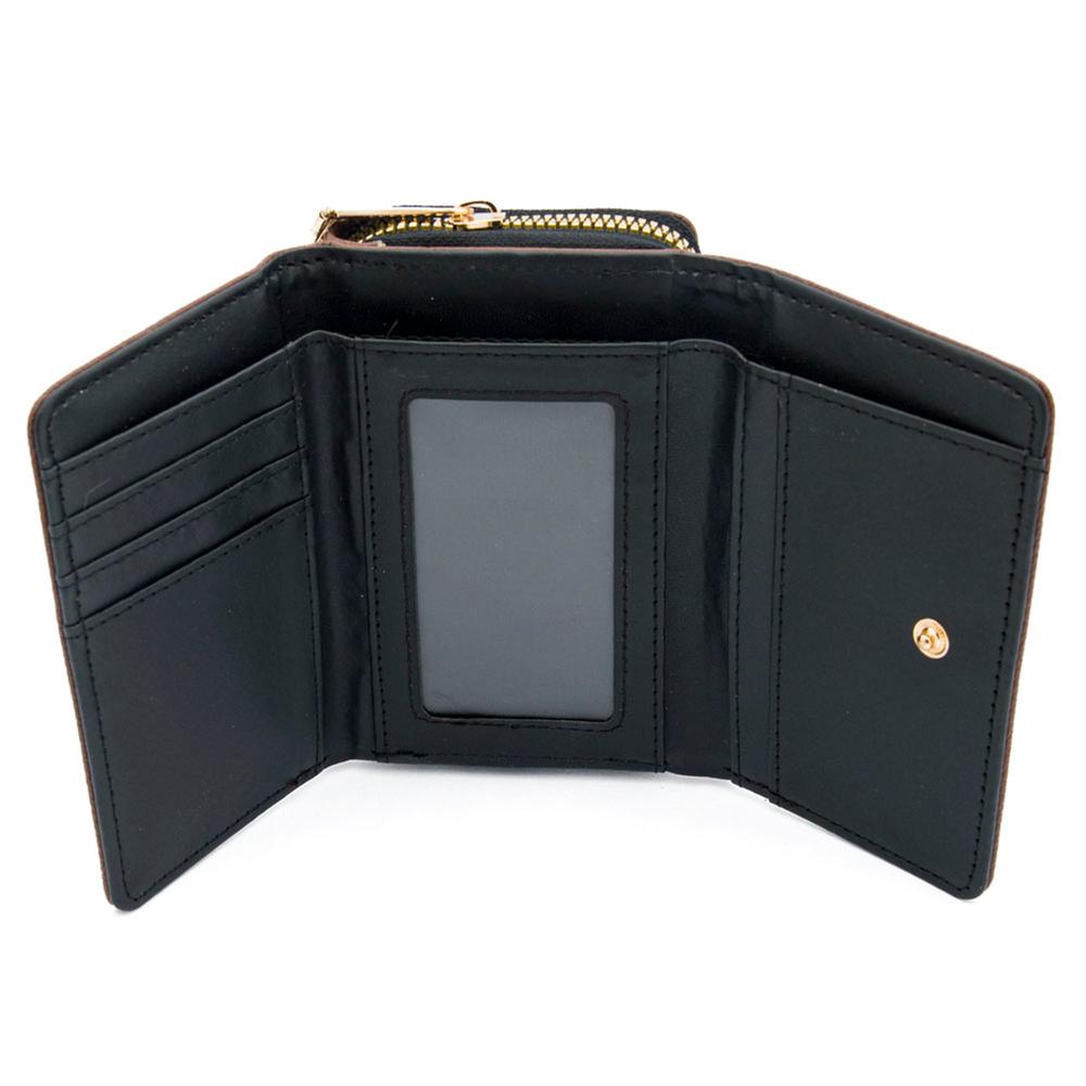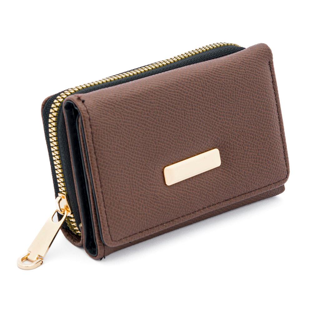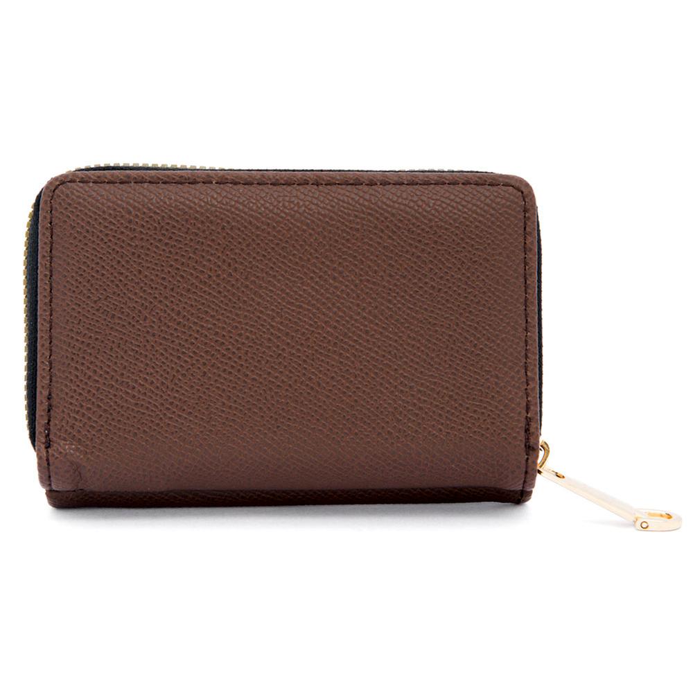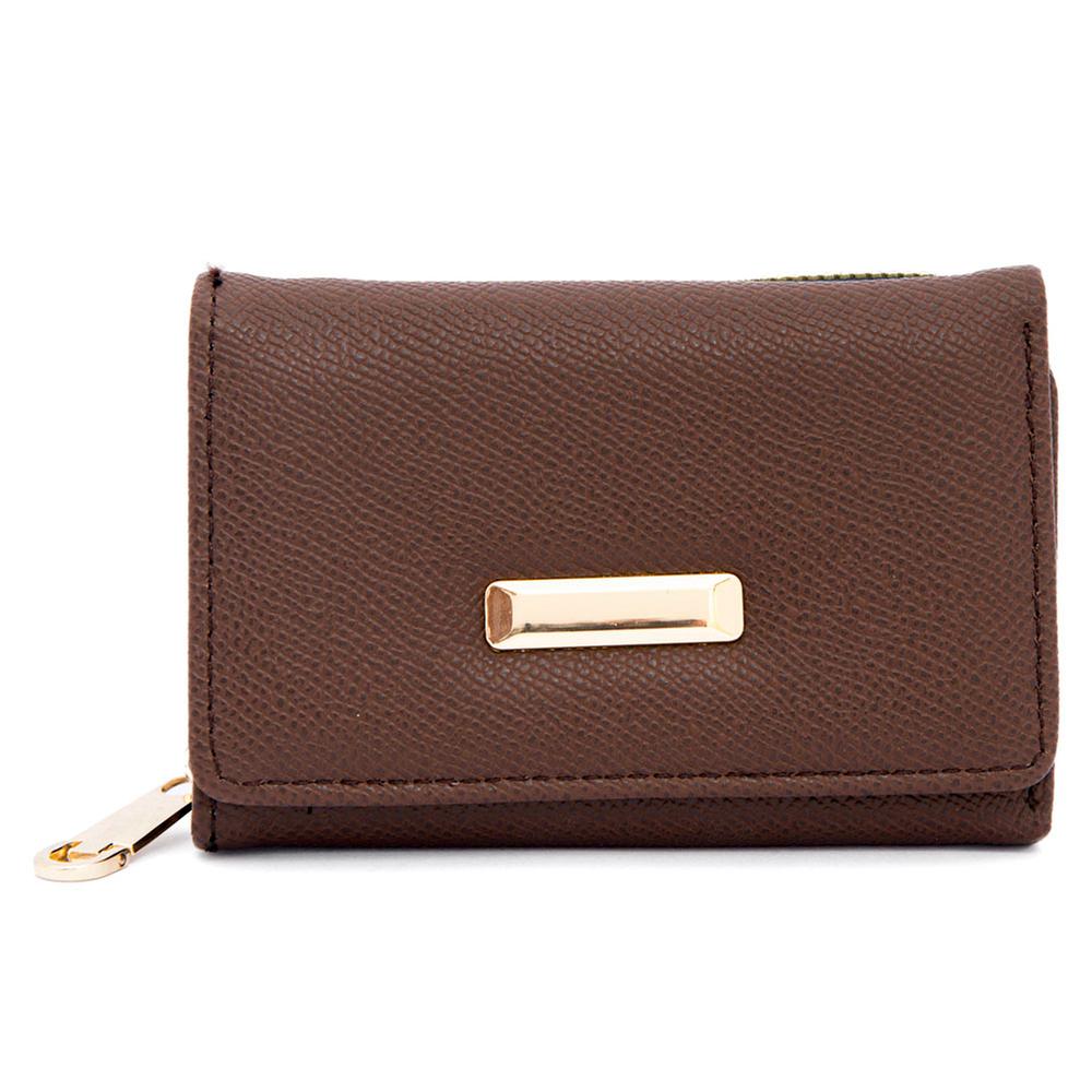 Cartera lisa en color chocolate con doble compartimento, práctica y elegante para llevar tus esenciales ordenados.