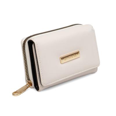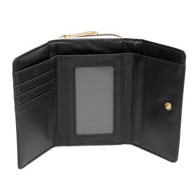 Un acento brillante para tu organización diaria. Cuenta con un diseño de triple pliegue y un panel frontal liso que sirve de base para una distinguida placa metálica. Ofrece diversos compartimientos tarjeteros, equilibrando perfectamente la sobriedad con el detalle moderno.