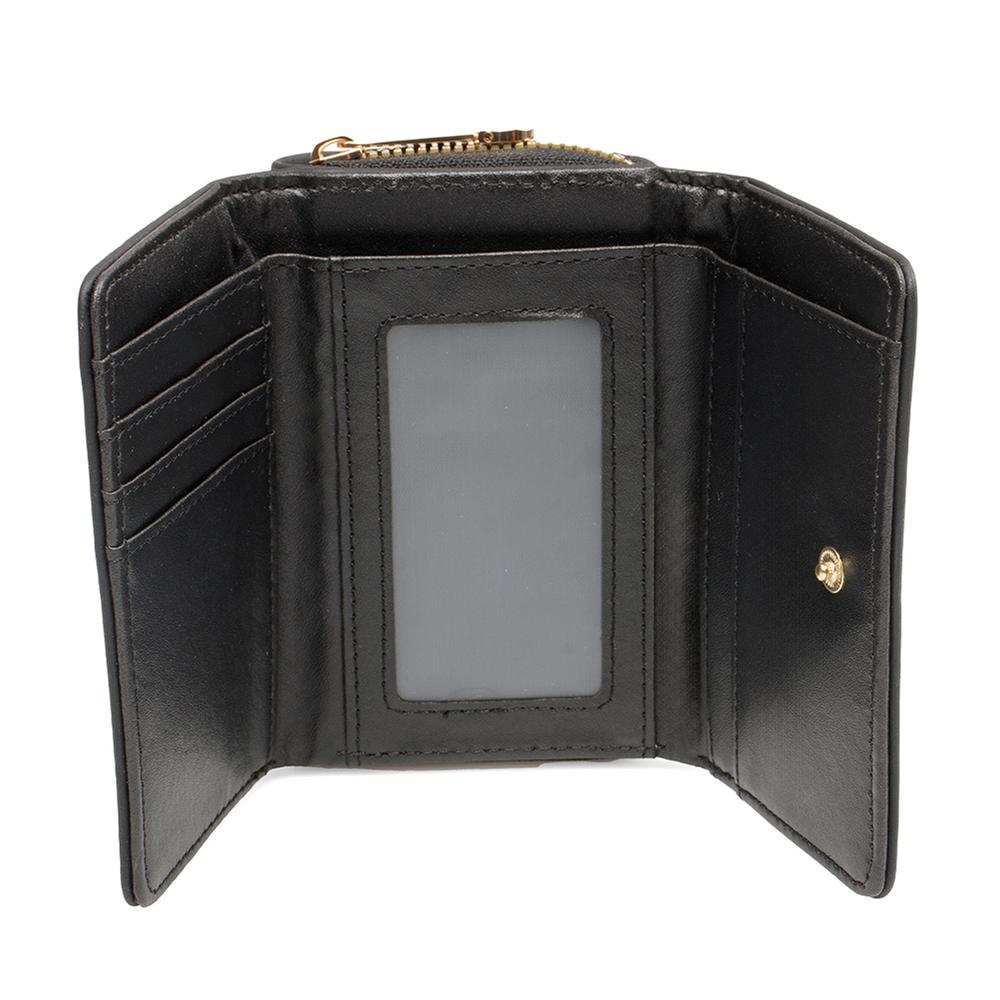Esta cartera para mujer combina estilo y funcionalidad en un diseño elegante que resalta en cualquier ocasión. Sus compartimentos interiores y el monedero con cremallera permiten organizar tus pertenencias de manera práctica y segura. La placa frontal decorativa añade un detalle sofisticado que le da un toque distintivo a tu look.
