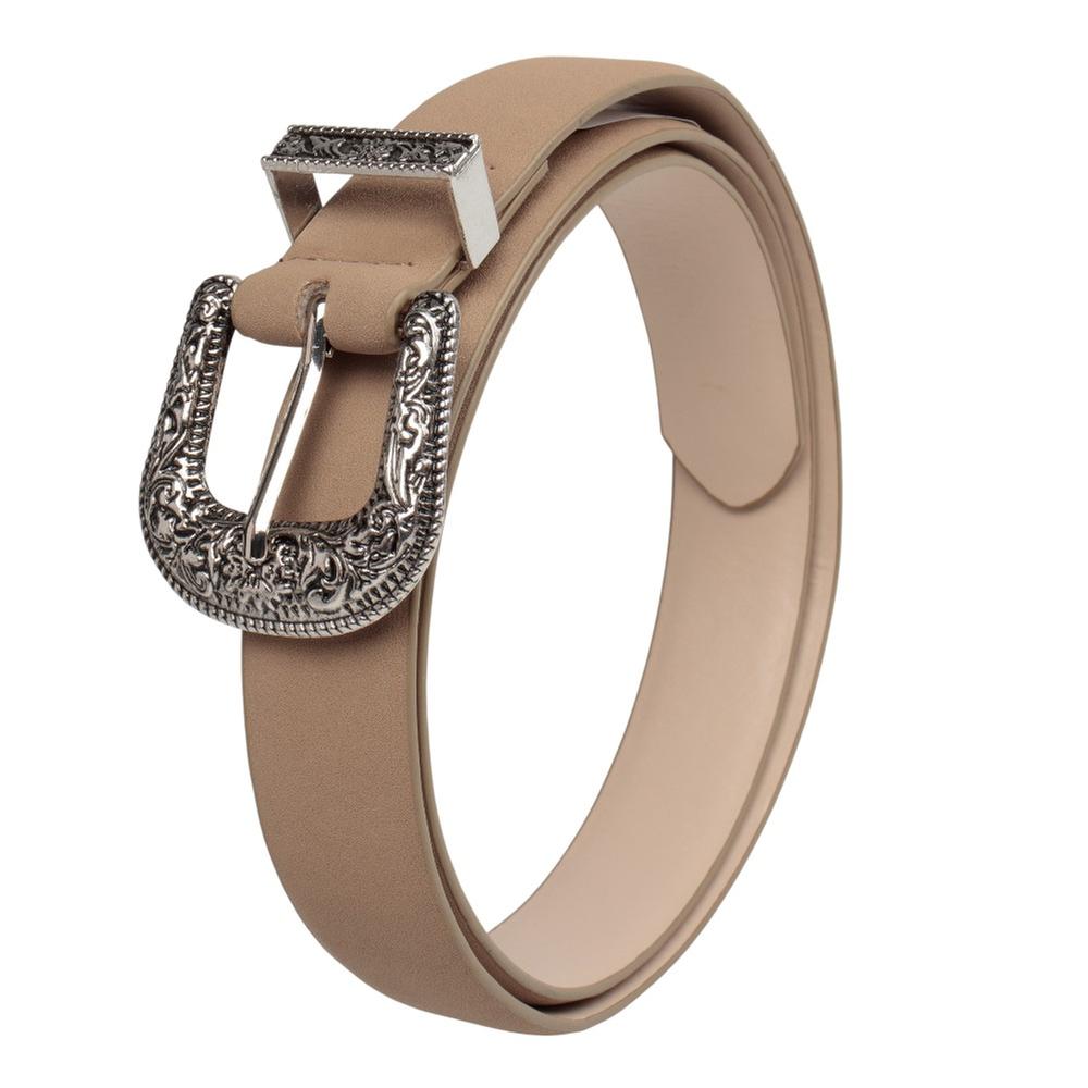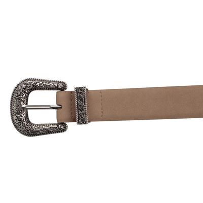 Define tu cintura con este cinturón estilo vaquero de textura mate. La hebilla con acabado de plata vieja aporta un toque vintage irresistible