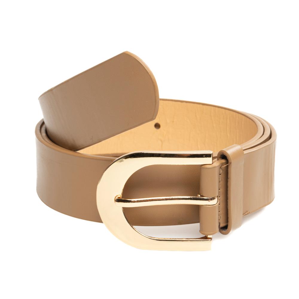 Refina tus outfits con este cinturón de acabado liso y hebilla metálica redondeada. Su estilo limpio y tono camel aporta elegancia moderna ideal para complementar cualquier look.