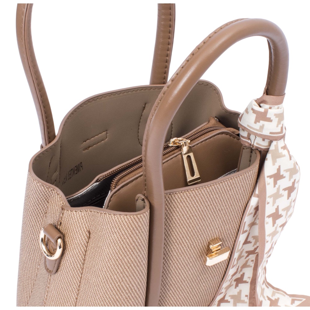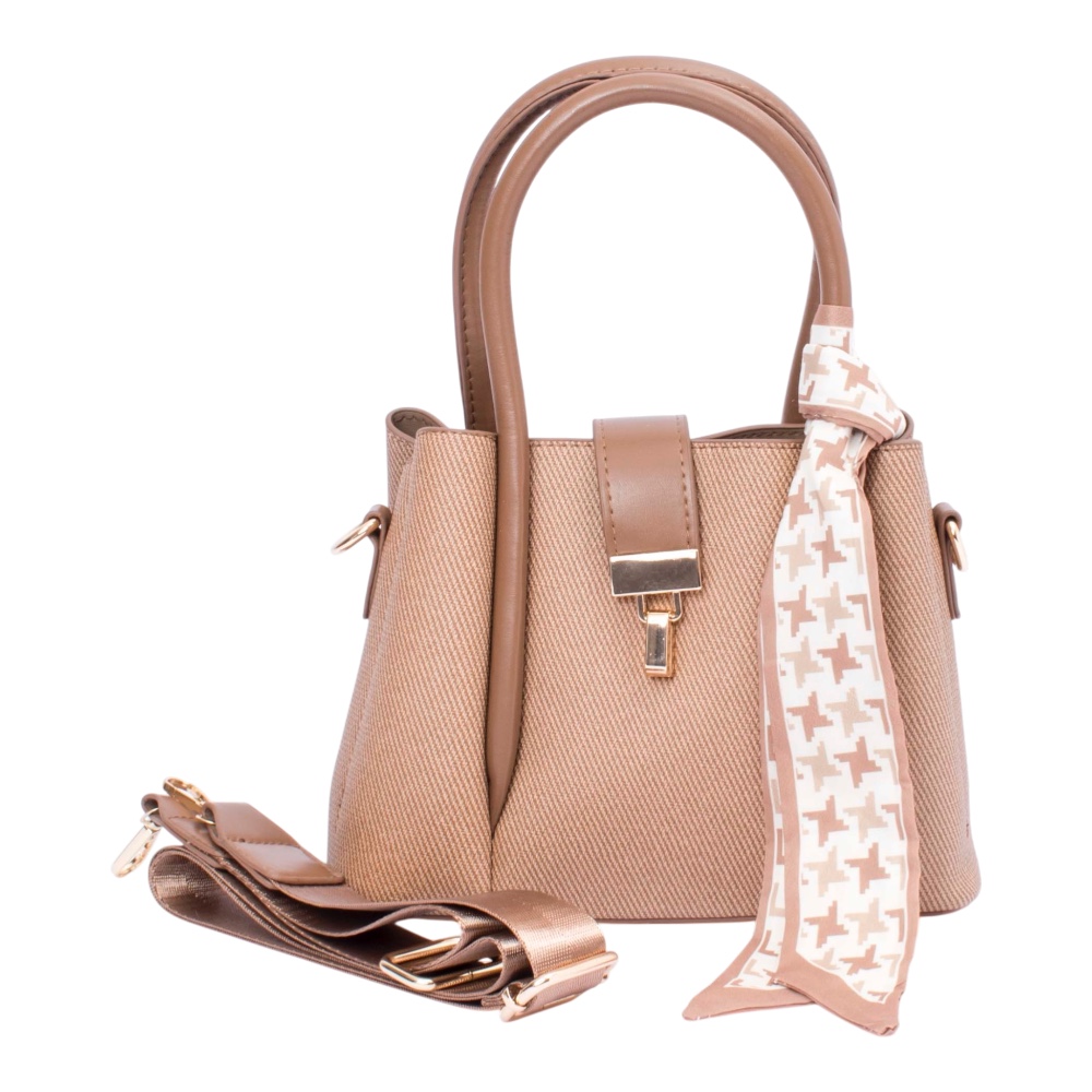 Luce un estilo elegante y versátil con esta bolsa con detalle decorativo de pañuelo, ideal para complementar cualquier look. Su diseño combina funcionalidad y sofisticación, ofreciendo comodidad y un toque chic en cada ocasión.