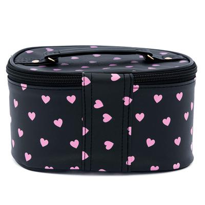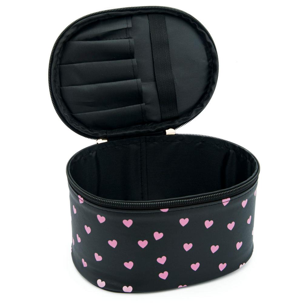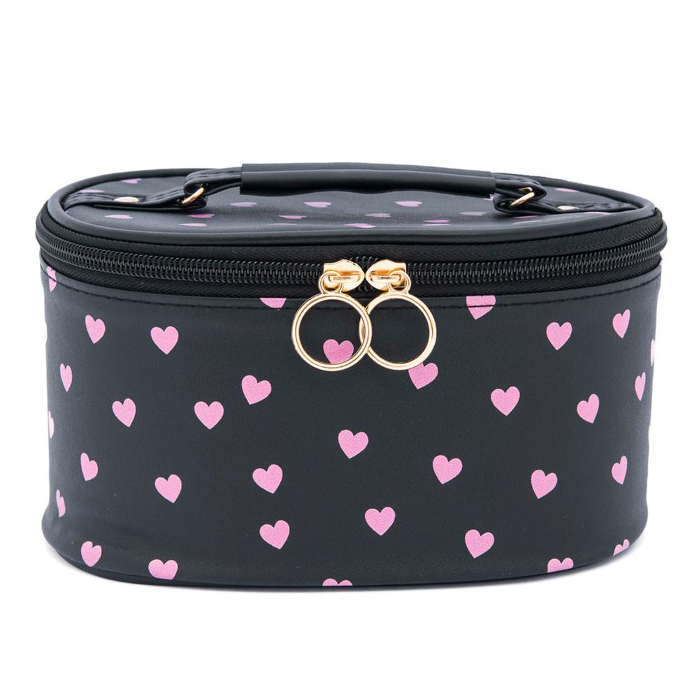 Cosmetiquera ovalada para mujer con diseño de corazones, práctica y resistente para llevar tus esenciales a todas partes