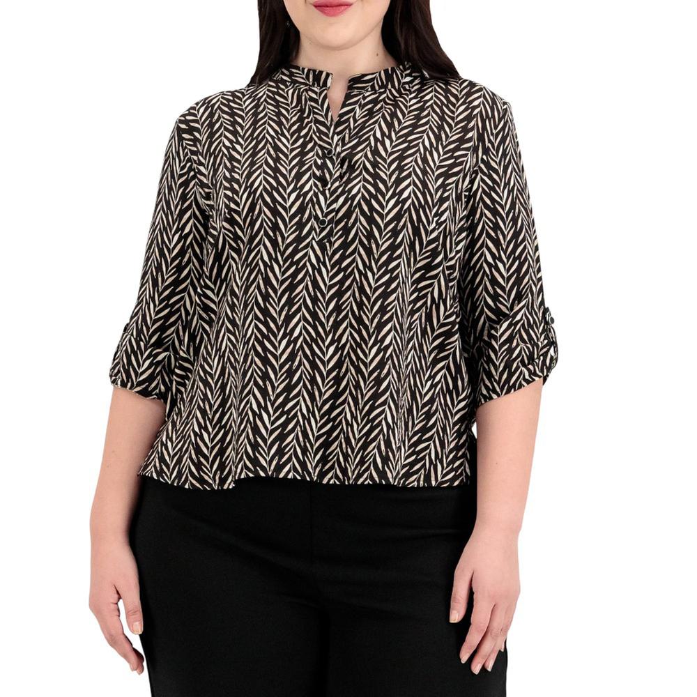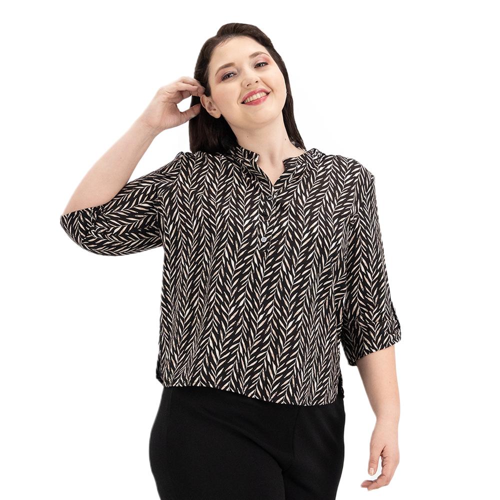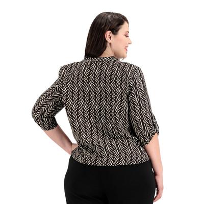 Sofisticación de inspiración oriental. esta blusa combina un estampado integral con la elegancia limpia del cuello mao, ofreciendo una silueta minimalista pero visualmente rica. ideal para elevar cualquier atuendo con un toque de distinción.