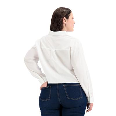 Blusa corta de diseño liso con detalle especial en el ruedo que aporta un toque distintivo. Perfecta para looks casuales con un giro moderno y femenino