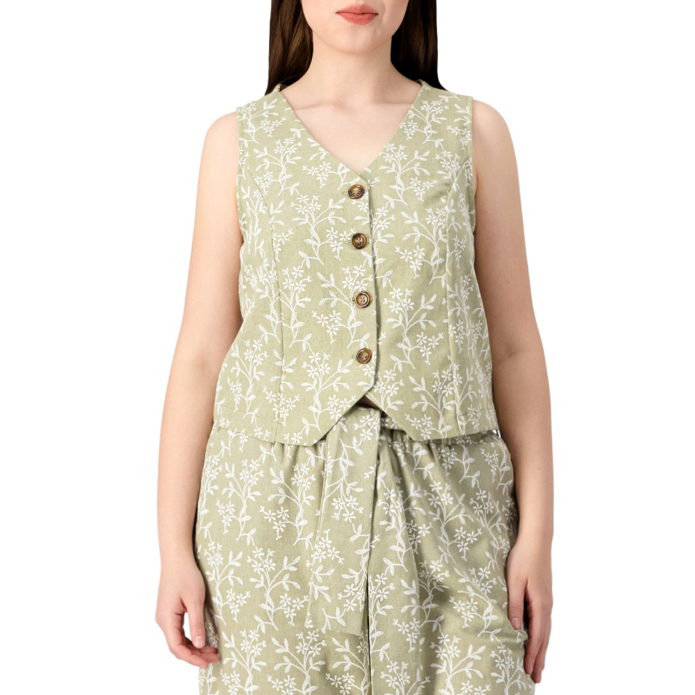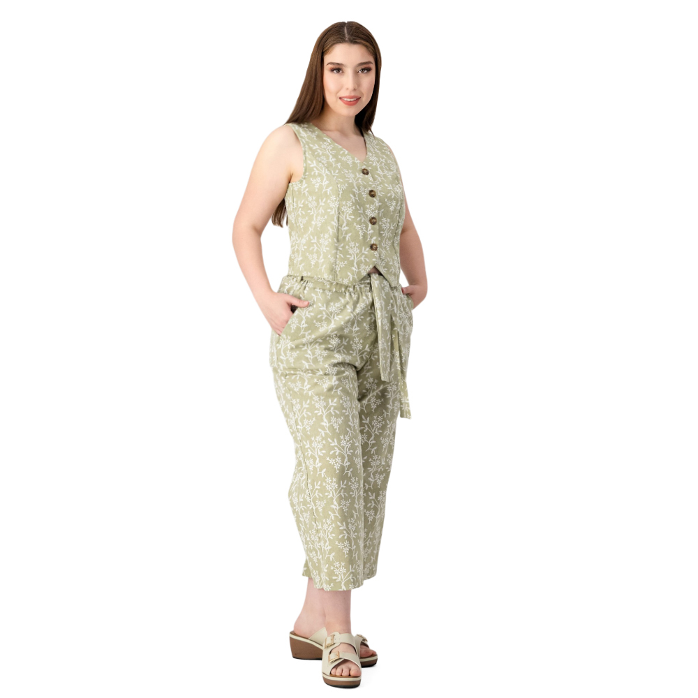 Conjunto Chaleco Y Pantalón Mxstaza Mujer Full Print Flores