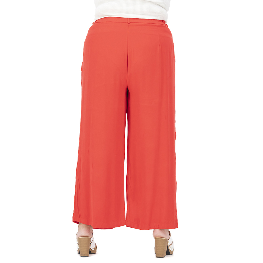 Este pantalón amplio ofrece un ajuste cómodo y elegante gracias a su diseño liso y su corte relajado. Con zipper y botón, se asegura un cierre seguro, mientras que sus bolsas funcionales añaden practicidad al estilo. Ideal para quienes buscan confort sin perder el toque de sofisticación.
