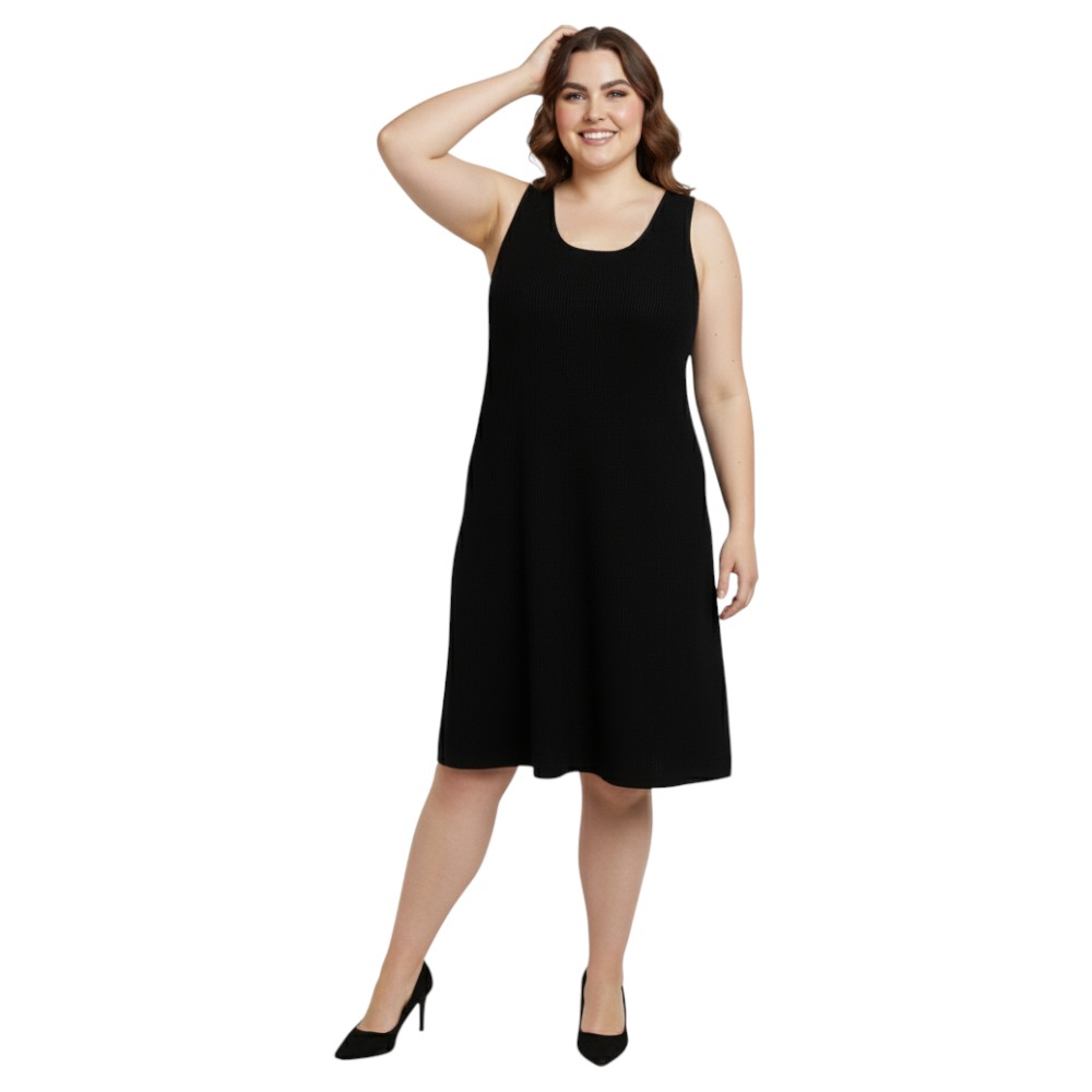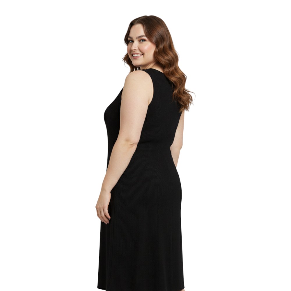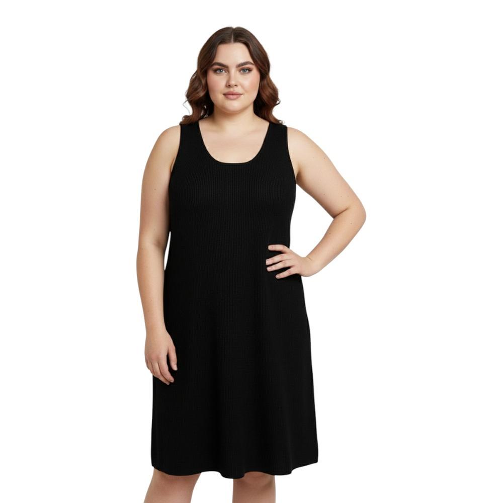 Vestido largo tipo acanalado, elegante y versátil, que realza la figura y ofrece comodidad durante todo el día.