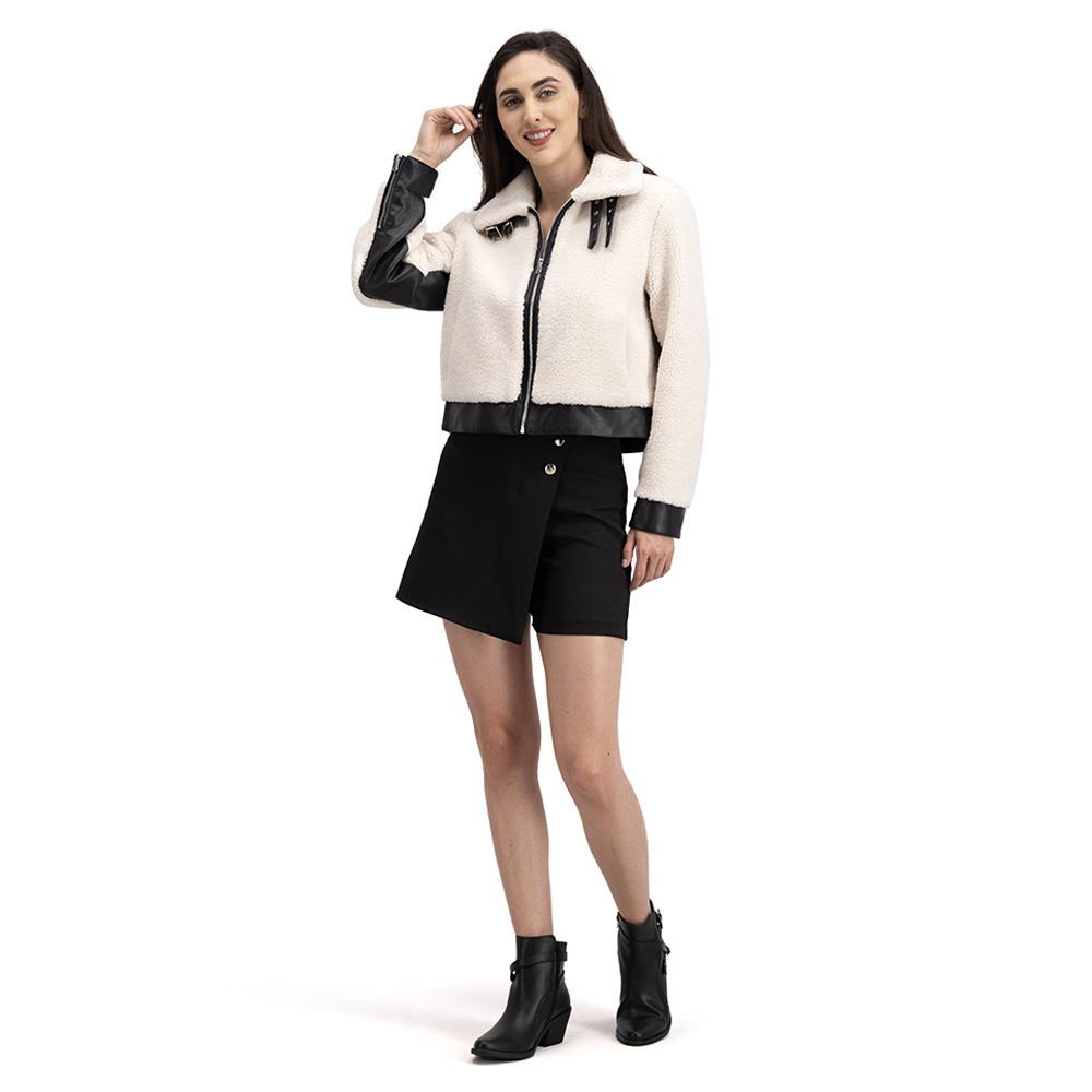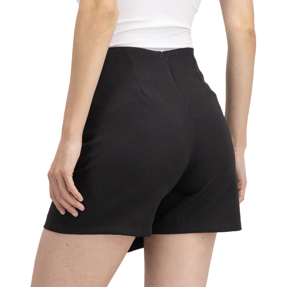 Esta falda short ofrece una mezcla perfecta entre estilo y practicidad, brindando libertad de movimiento con una apariencia elegante. Su diseño liso y cierre posterior la hacen ideal para looks frescos y modernos que destacan en cualquier ocasión.