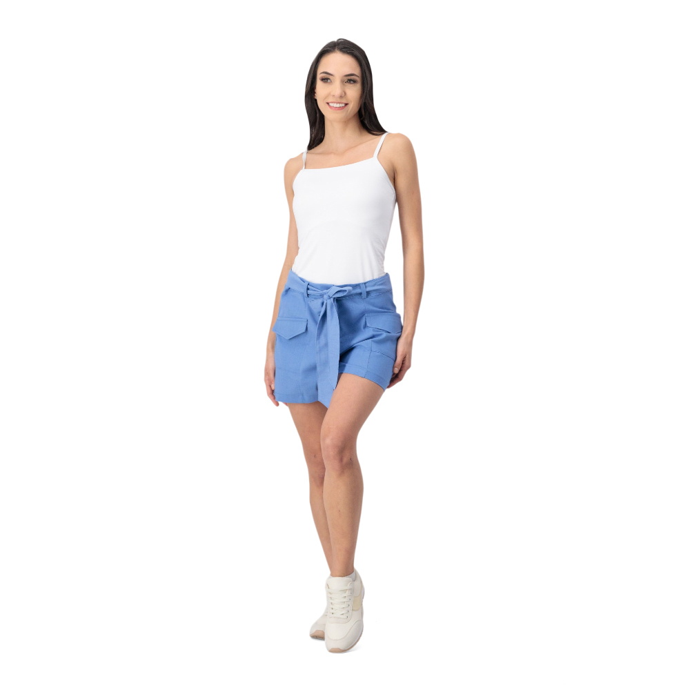 Este short con amarre frontal es una prenda cómoda y versátil, ideal para crear looks casuales con un toque moderno y relajado. Su diseño funcional lo convierte en una excelente opción para el día a día, ofreciendo estilo sin perder practicidad. Perfecto para climas cálidos y actividades cotidianas.