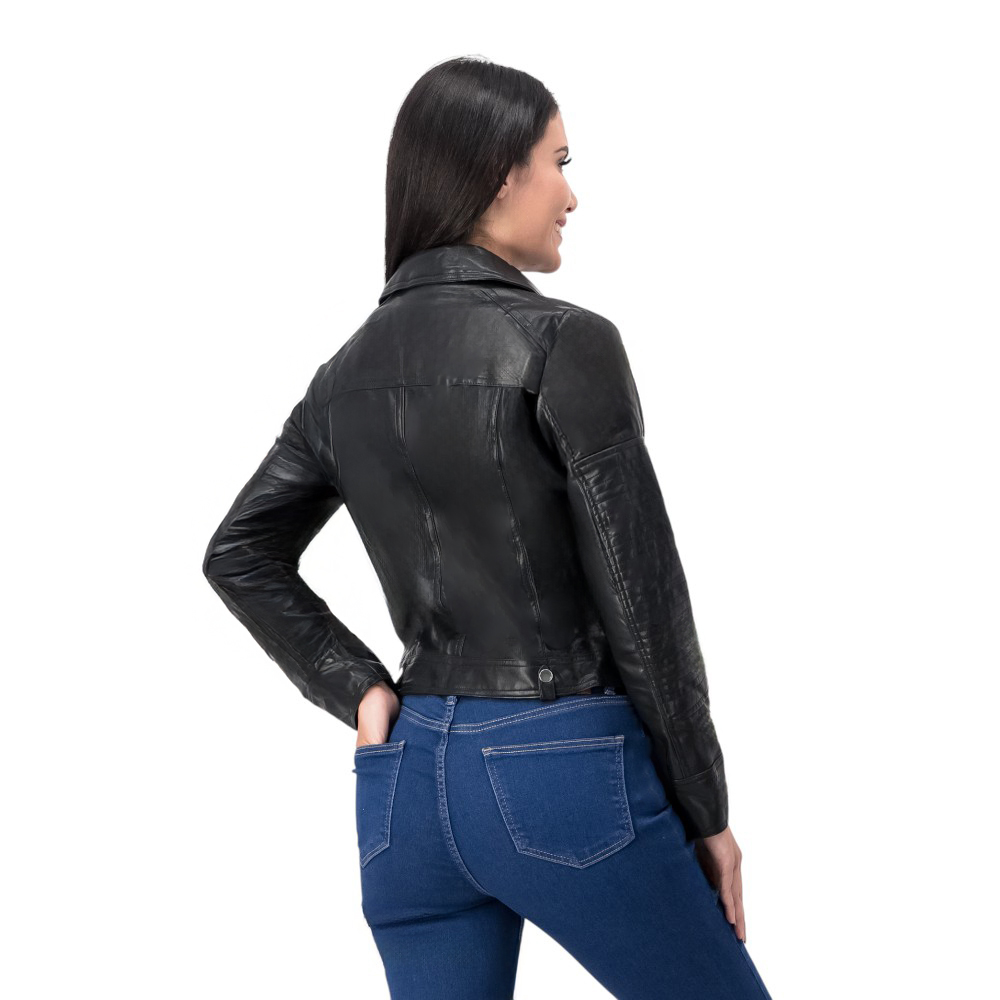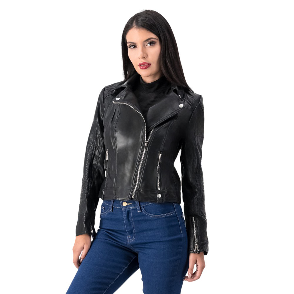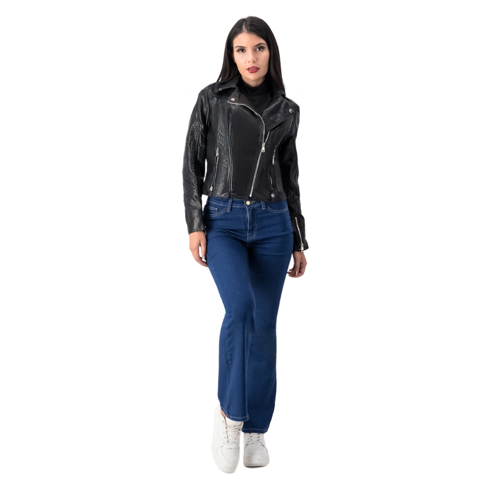 La chamarra tipo biker combina un diseño audaz con funcionalidad, perfecta para quienes buscan un estilo rebelde y contemporáneo. Está confeccionada con detalles que marcan la diferencia, como cremalleras y broches en contraste que realzan su carácter, además de bolsillos laterales con cremallera que aportan practicidad y cremalleras en los puños para un ajuste personalizado.