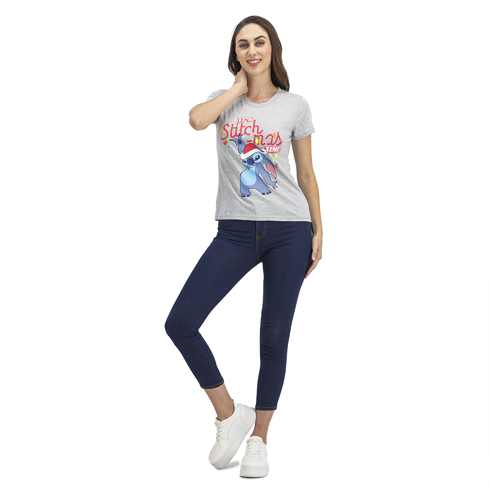 ¡Celebra la Navidad con estilo! Esta playera "It's Stitch-mas Time" para mujer cuenta con un encantador estampado de Stitch y una divertida leyenda, perfecta para cualquier ocasión festiva