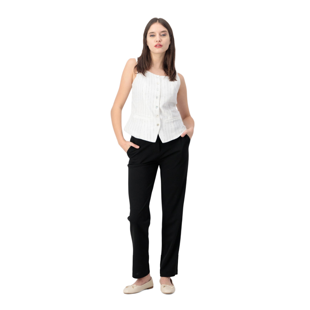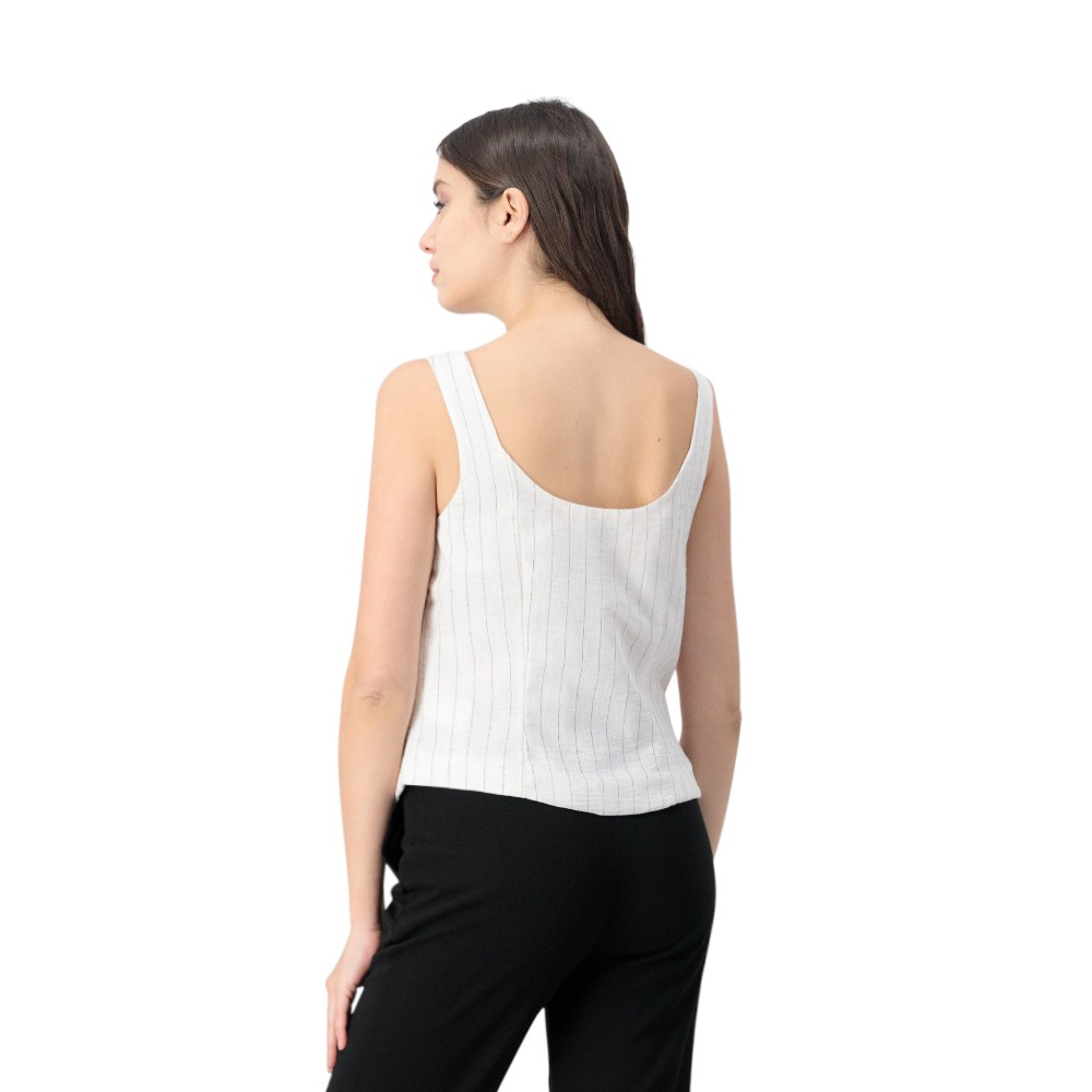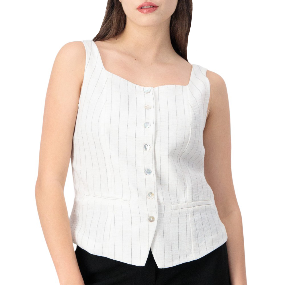 Añade un toque sofisticado a tu outfit con el chaleco de escote trasero, una prenda moderna que eleva cualquier look con elegancia y estilo. Su diseño de rayas aporta un aire clásico y versátil, ideal para combinar con outfits casuales o más formales. Perfecto para quienes buscan destacar con un detalle único y refinado.