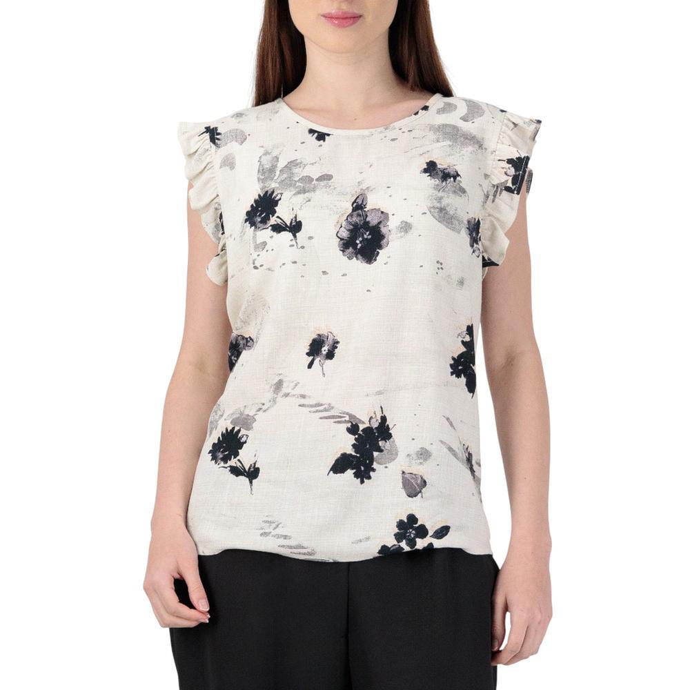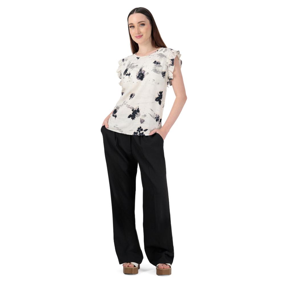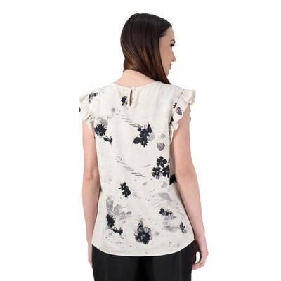Atributos: Cuello redondo que brinda comodidad y ajuste seguro Estampado con diseño de flores que añade frescura y estilo Aplicación de olán en hombros que aporta un detalle femenino y elegante