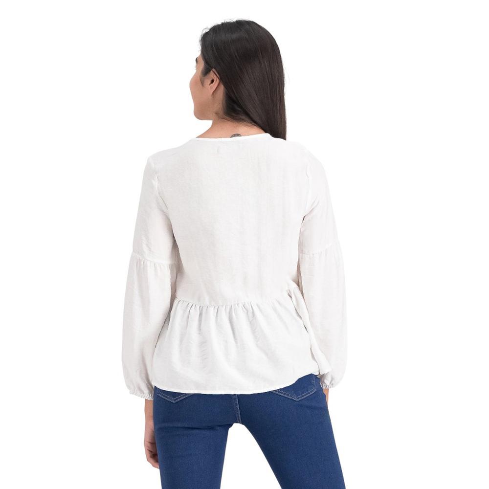 Dale un toque femenino y delicado a tu estilo con esta blusa de jareta en el cuello. Su diseño con olán, manga larga y elástico en los puños aporta movimiento y comodidad, ideal para un look romántico y elegante. Perfecta para combinar con faldas o pantalones y destacar en cualquier ocasión.