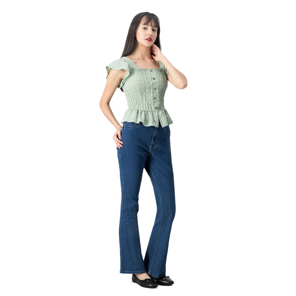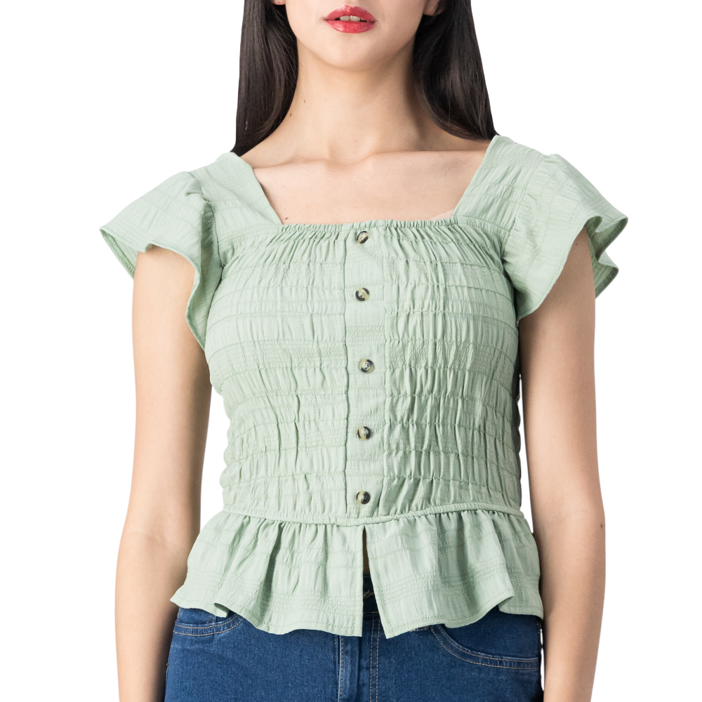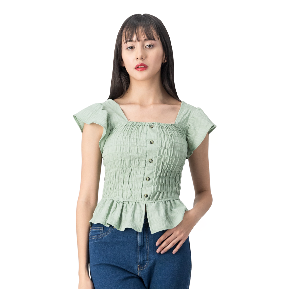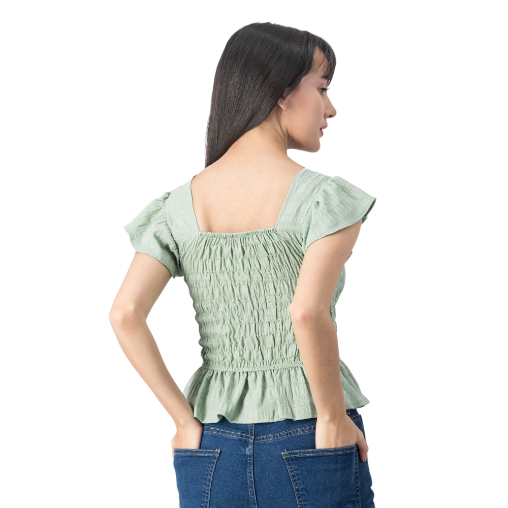 Luce un estilo femenino y romántico con esta blusa con olán en hombros, perfecta para looks delicados y con personalidad. Su diseño combina detalles sofisticados y comodidad, creando un efecto elegante y moderno.