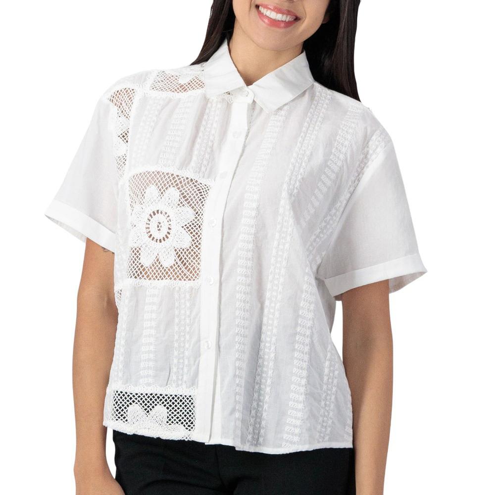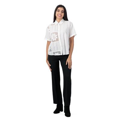 Camisa Mxstaza Mujer Aplicaciones Semi Transparentes