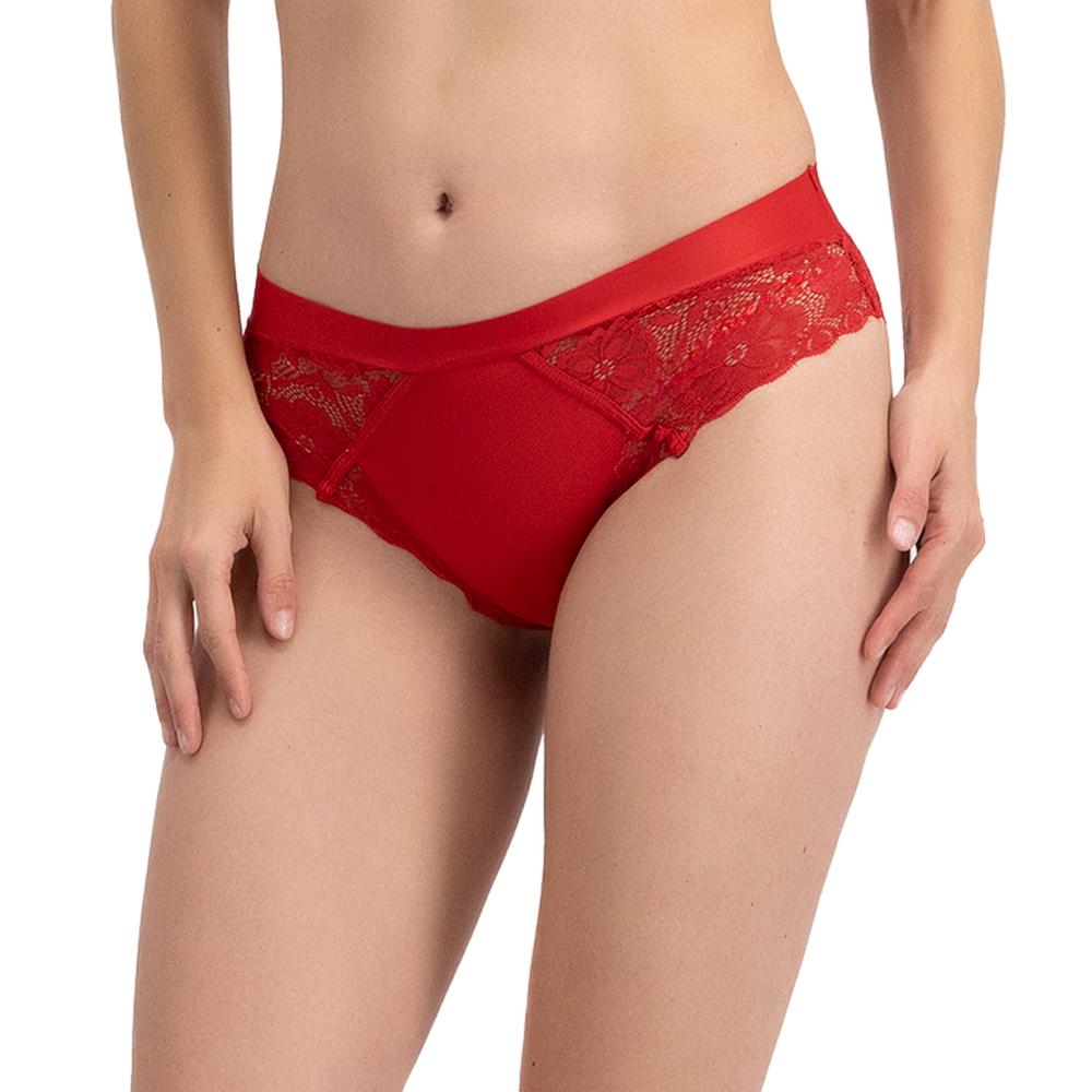 Panty Mon Amour Mujer Asimétrico Con Encaje Floral Rojo