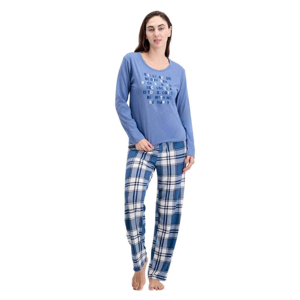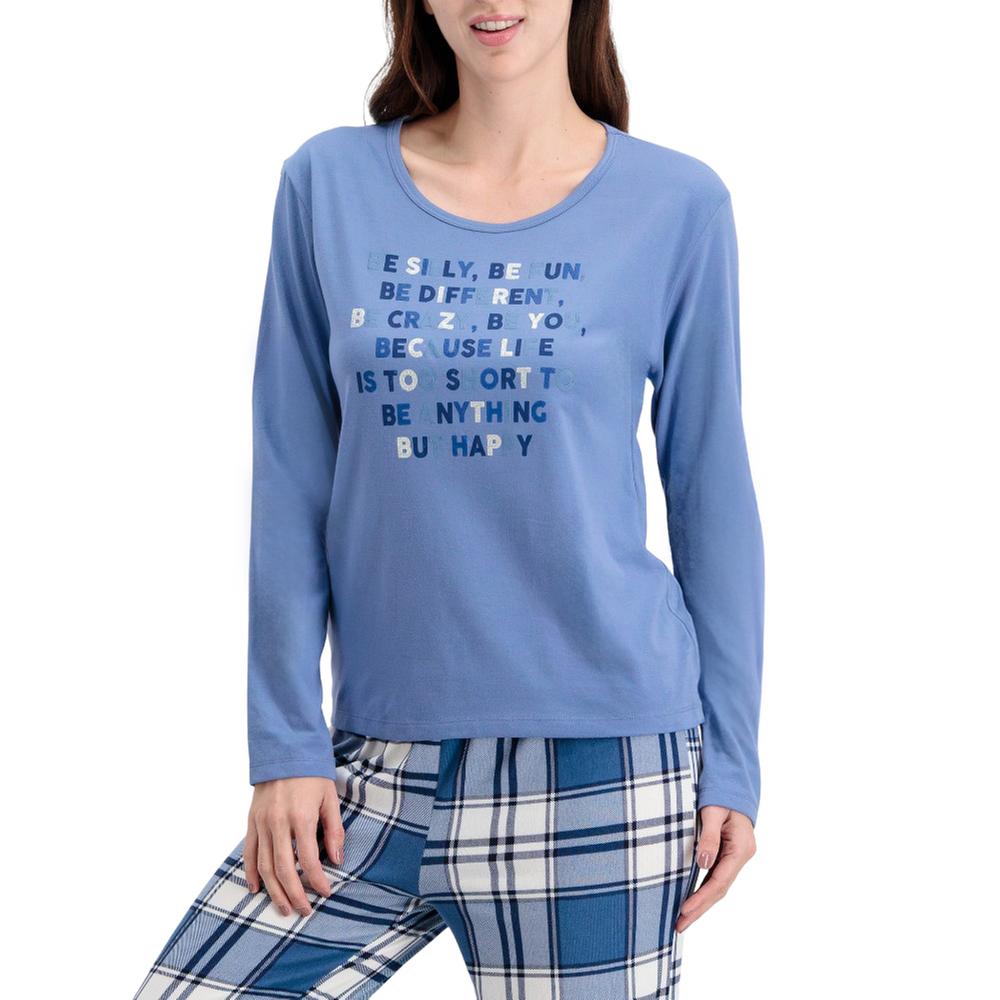 Pijama Playera Y Pantalón Tops & Bottoms Mujer Manga Larga Estampado Frontal