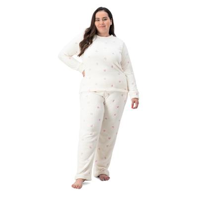 Pijama para mujer que combina estilo y comodidad con una sudadera de cuello redondo y delicado diseño bordado, perfecta para mantener el calor y un toque elegante. El ajuste en puños asegura un calce cómodo, mientras que el pantalón con cintura elástica y bordados complementa el conjunto con un acabado armonioso y femenino. Ideal para relajarte con estilo en casa.