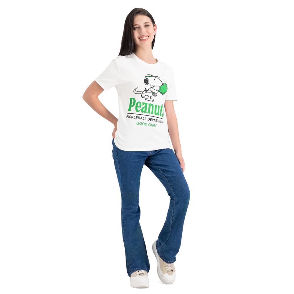 Esta playera para mujer combina comodidad y estilo con su diseño de mangas cortas y cuello redondo, ideal para el día a día. El estampado frontal de Snoopy aporta un toque divertido y lleno de personalidad, haciendo de esta prenda una opción versátil para looks casuales y modernos.
