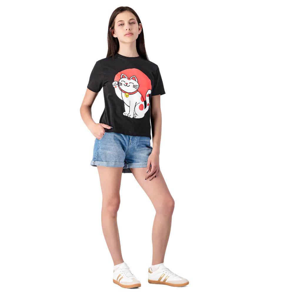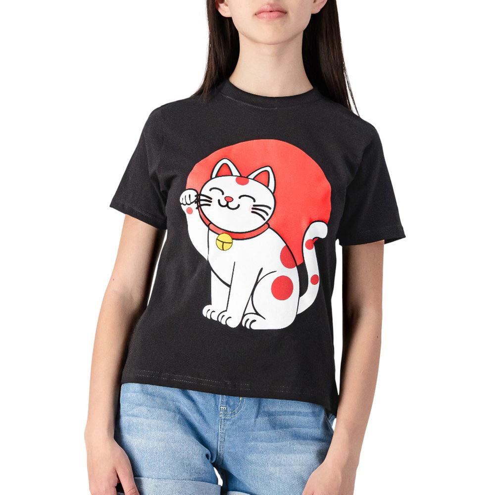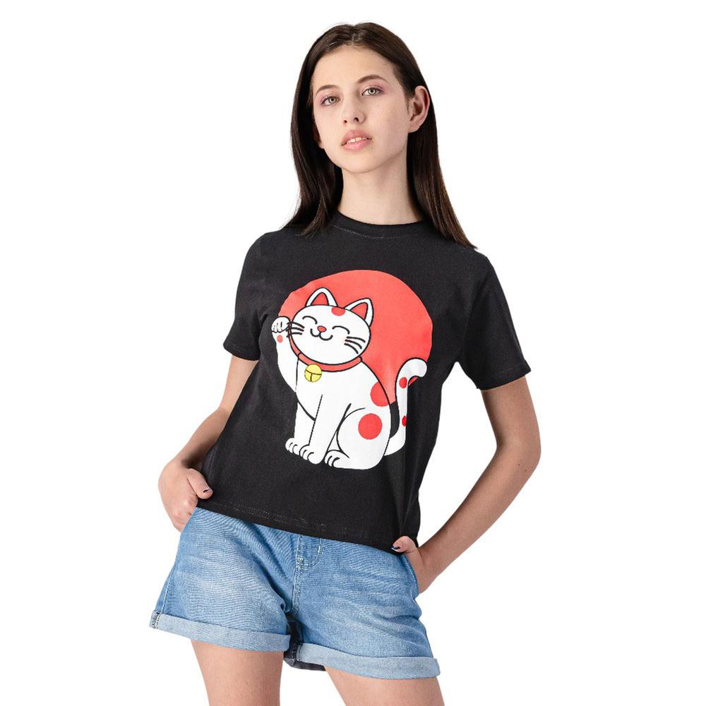 Playera Red Sky Mujer Manga Corta Estampado Gato De La Abundancia