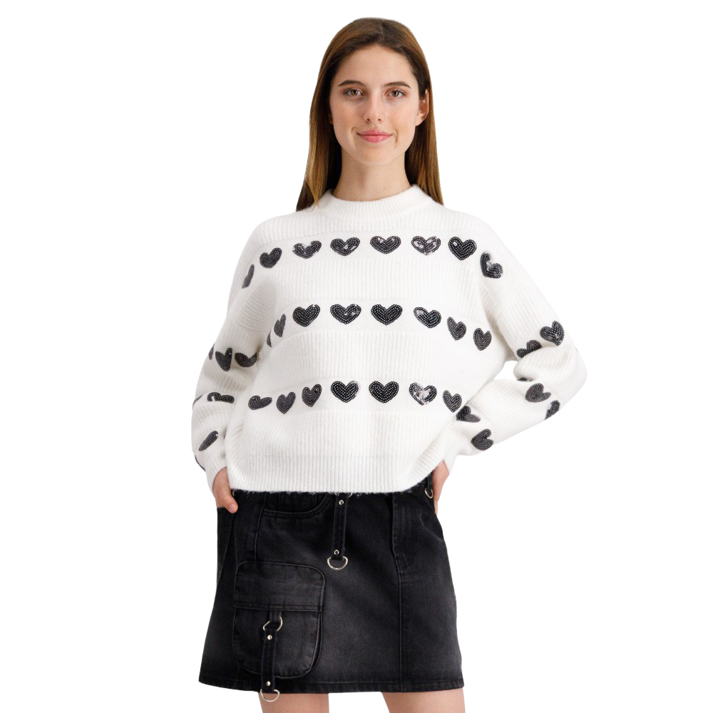 Suéter Red Sky Mujer Corazones De Lentejuela