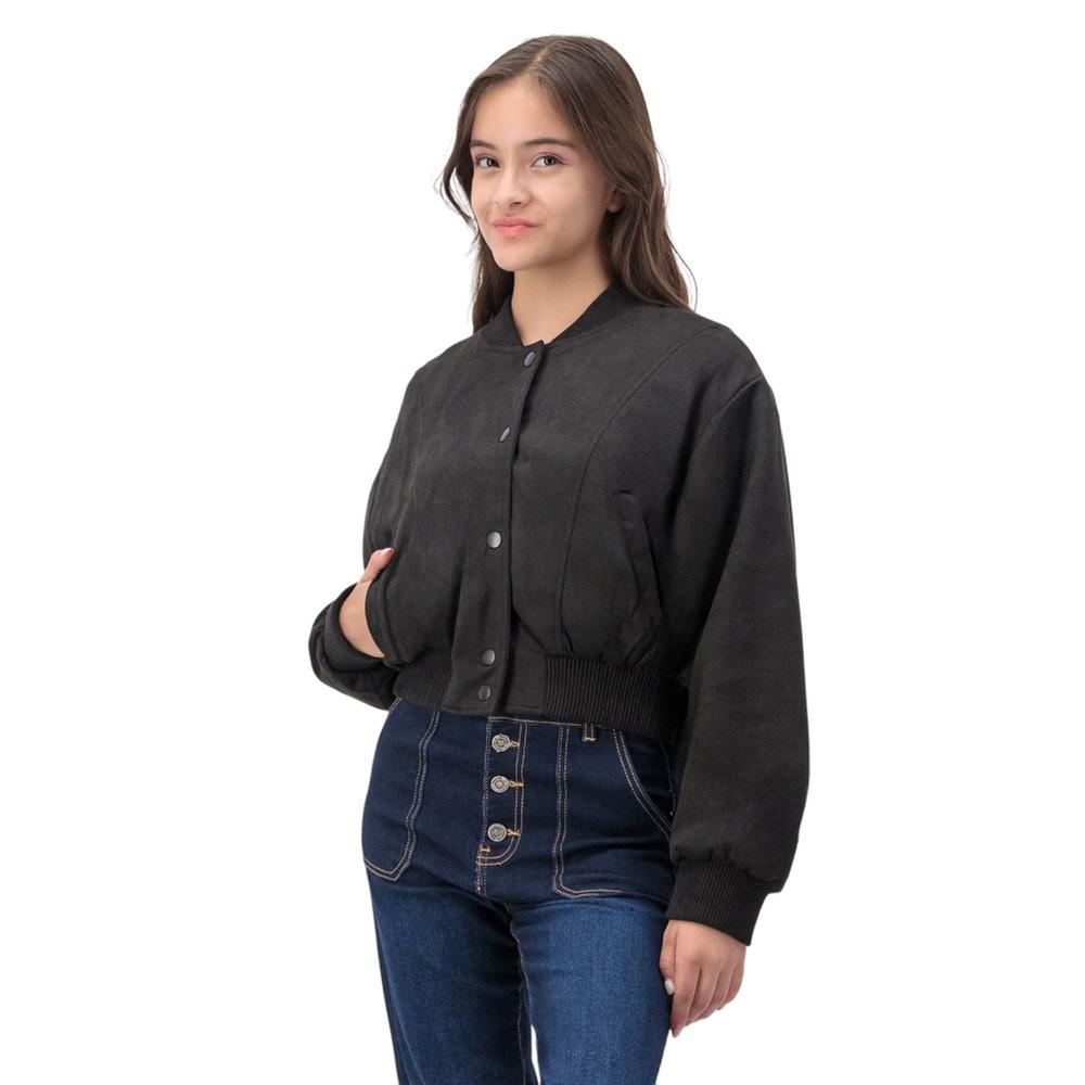 Chamarra para mujer con diseño liso que ofrece un estilo elegante y versátil, ideal para complementar cualquier outfit. Cuenta con cuello redondo y cierre de broches a presión que facilitan su uso y ajuste, mientras que las bolsas laterales aportan funcionalidad para guardar lo esencial. El ajuste en puños y ruedo garantiza comodidad y un calce perfecto.