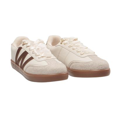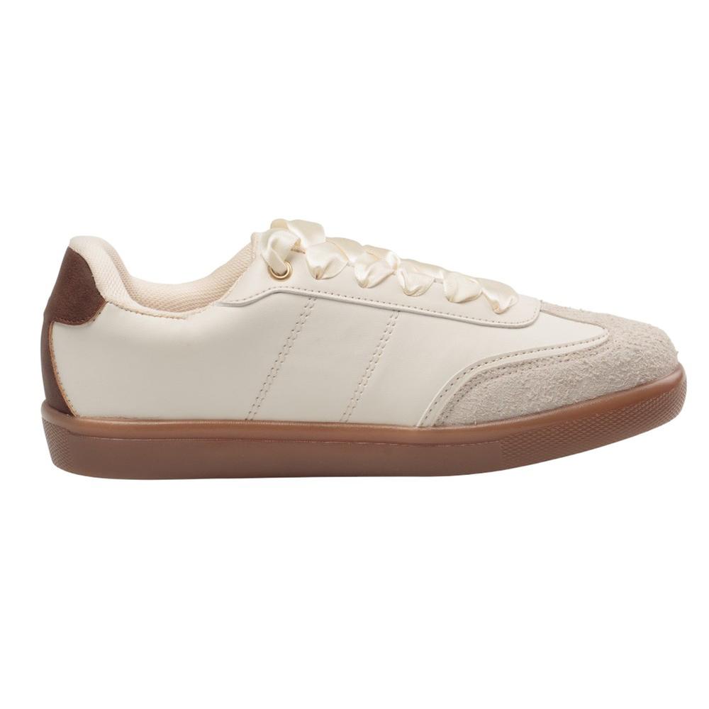 Estos tenis para mujer combinan estilo urbano y un toque femenino gracias a sus agujetas de listón y elegantes detalles metálicos. La puntera tipo gamuza aporta textura y sofisticación, mientras que la suela de goma brinda comodidad y estabilidad en cada paso. Perfectos para complementar tus looks casuales con un acabado moderno y distintivo.
