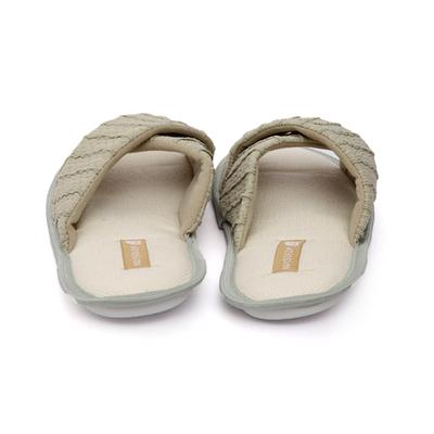Relájate con esta pantufla cruzada de textura toalla. Su diseño suave y suela delgada ofrecen frescura y comodidad, ideal para el hogar y momentos de descanso.