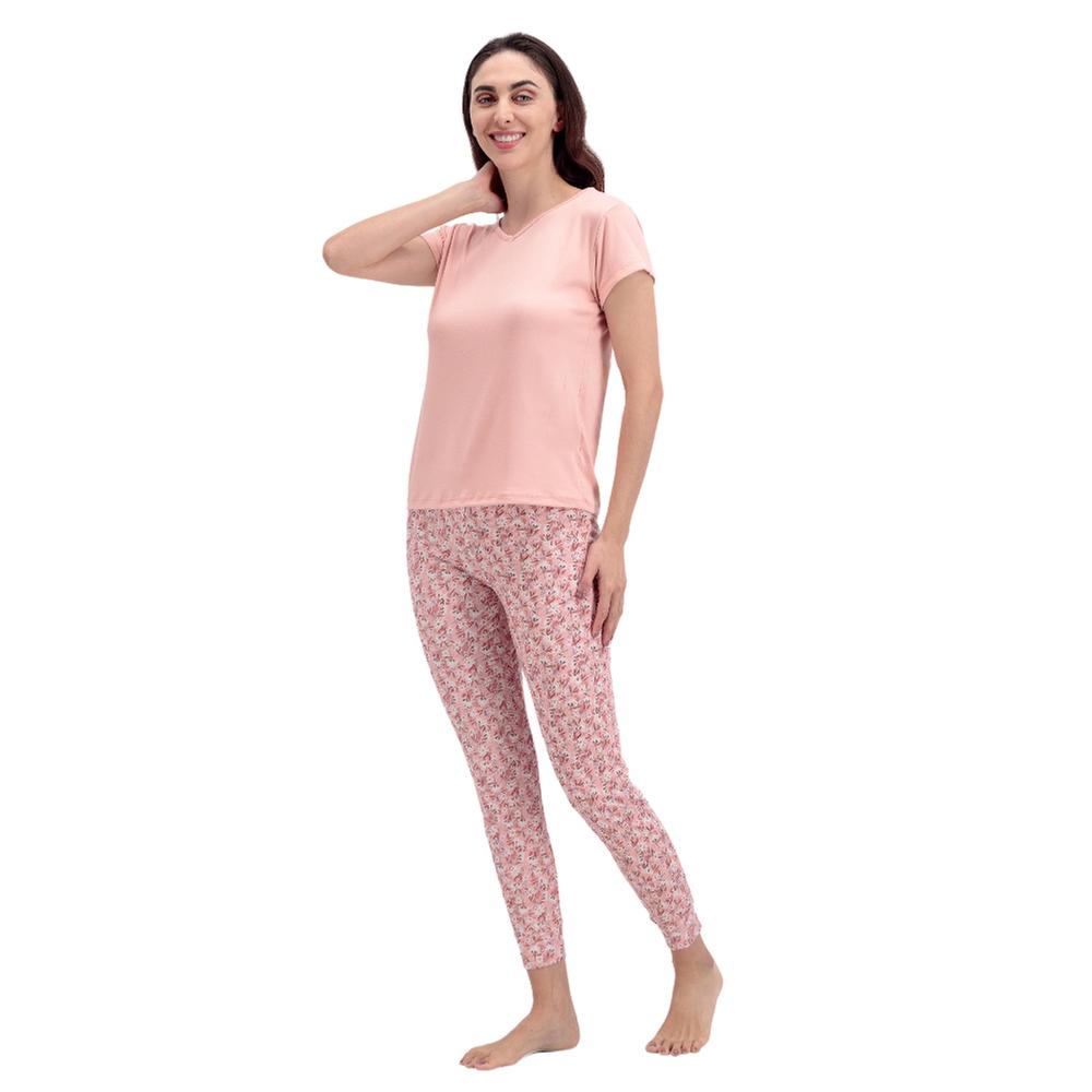 Comodidad a todo color. Un set de pijama que combina una playera básica de manga corta con un pantalón de diseño full print alegre. El elástico en la cintura del pantalón asegura un descanso perfecto.