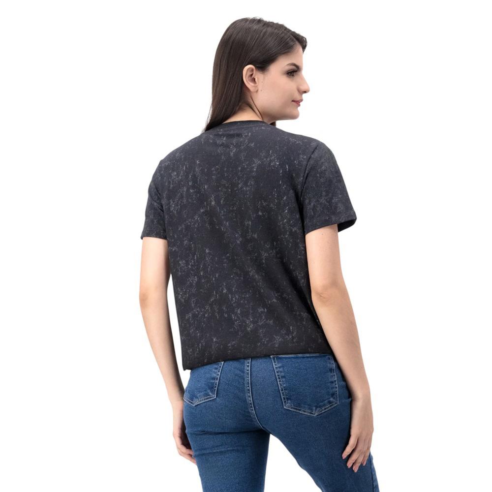 Atributos: Cuello redondo Manga corta Diseño de raya y estampado frontal