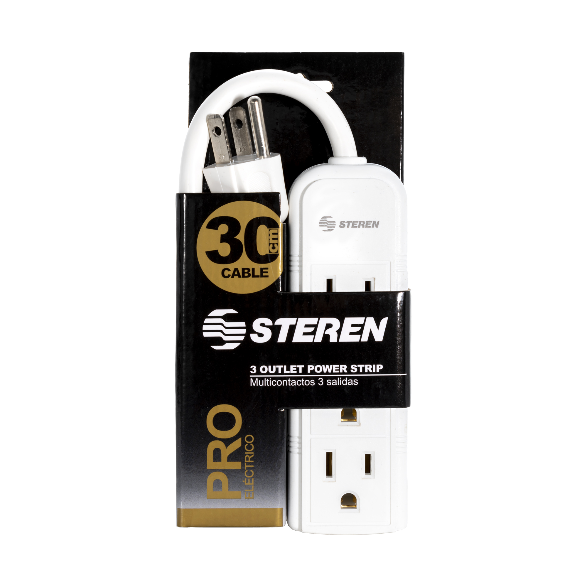 No sobrecargas tus enfunches con el Multicontacto de 3 Salidas Steren podrás conectar varios dispositivos al mismo tiempo, tiene una potencia de 1625W y un interruptor combinado de encendido – apagado, es exclusivo para interiores y cuenta con una longitud de 30 cm.