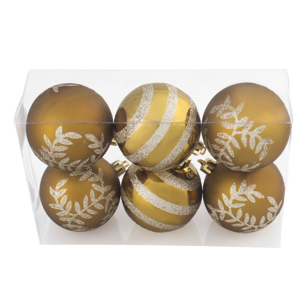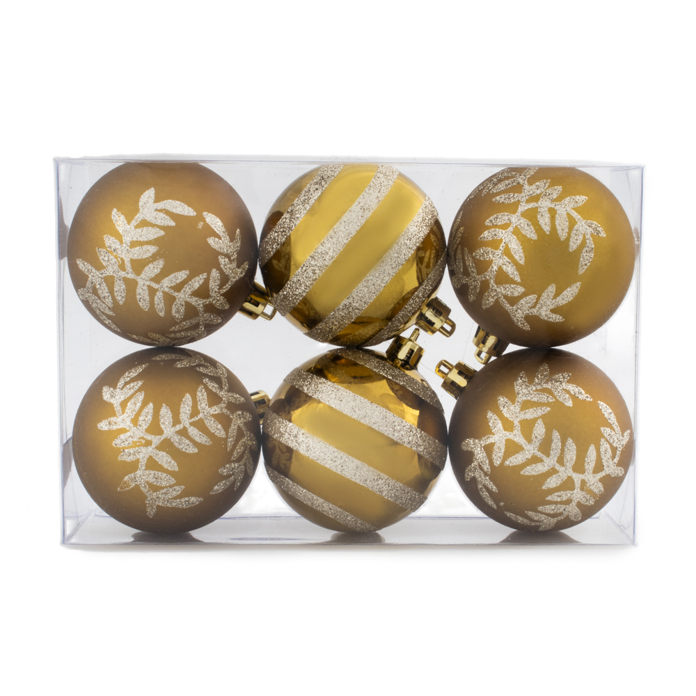 Esferas Christmas Accents 6 cm Oro con Blanco 6 Piezas