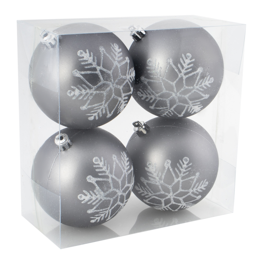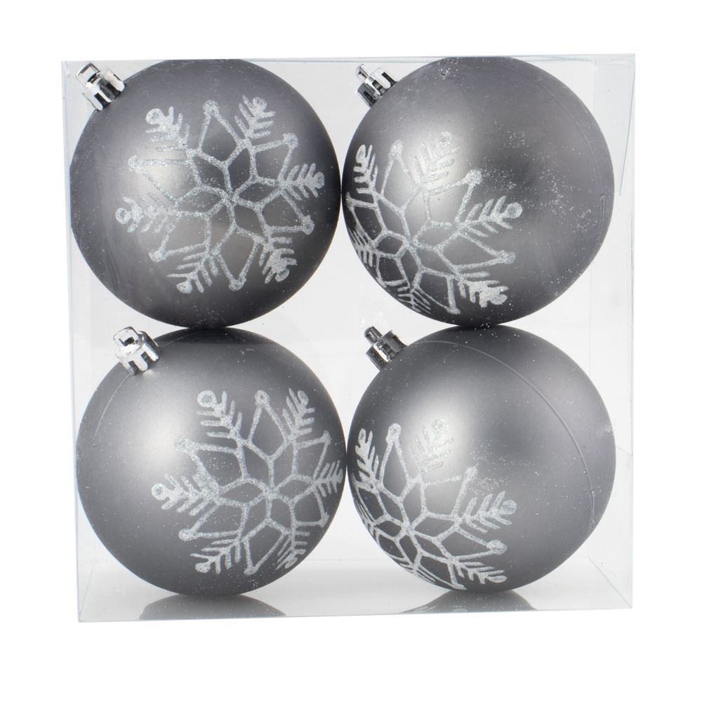 Esferas Christmas Accents 8 cm Plata con Blanco 4 Piezas