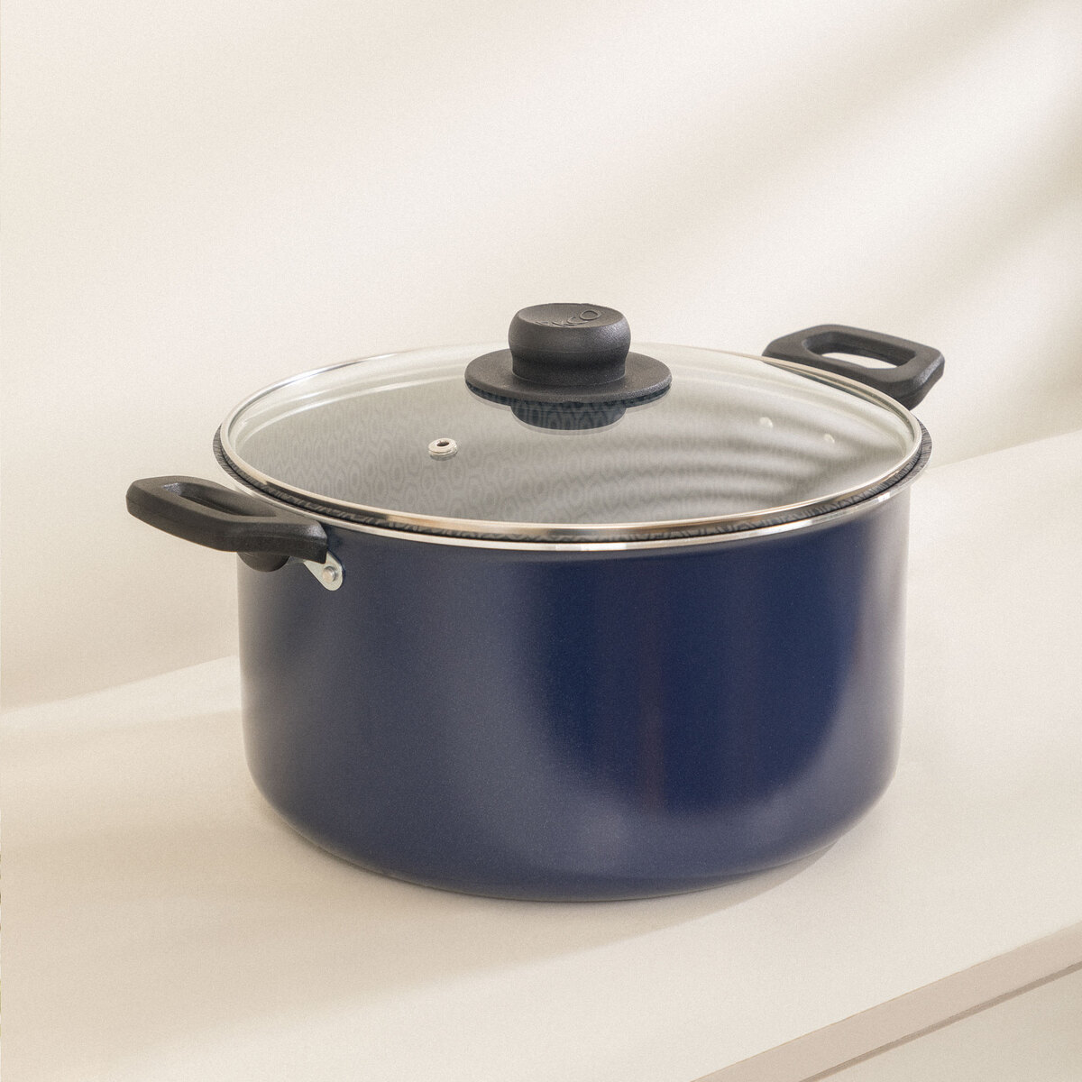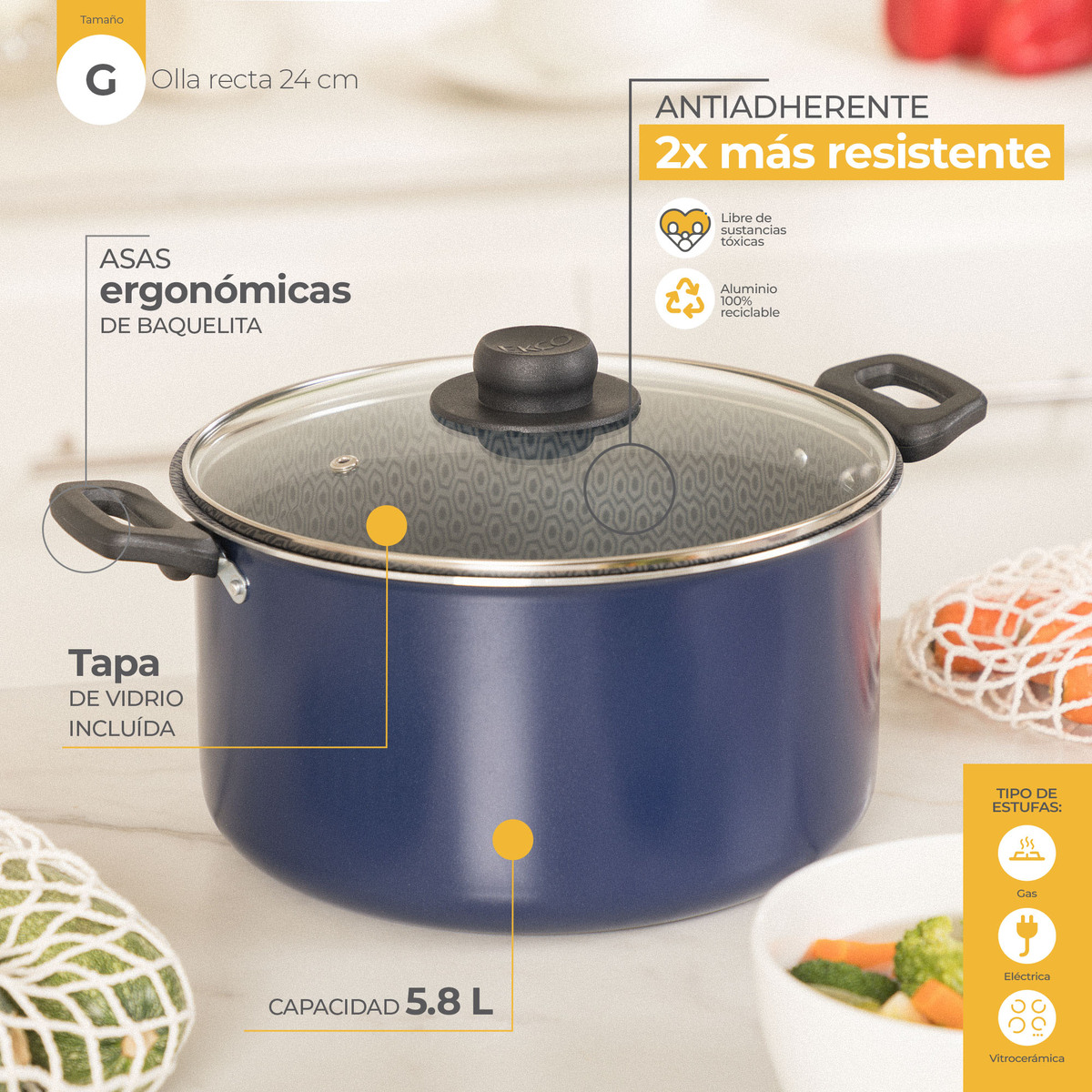 Prepara tus mejores recetas de manera rápida y práctica con la olla recta Ekco Classic sin preocuparte de que se peguen, gracias a su tecnología antiadherente. Este modelo de 24 cm en color azul ahorra tiempo al elaborar cada comida, ya que está fabricado de aluminio con 1.7 mm de espesor que permite una uniforme distribución del calor. Además, proporciona más seguridad al momento del agarre con sus asas de baquelita aislante de altas temperaturas y viene acompañada de una tapa de vidrio.