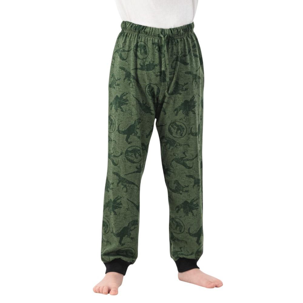 Pantalón para dormir con estampado de dinosaurios en tonos verdes, diseñado para brindar comodidad y estilo en la hora de descanso con cintura elástica y ajuste en puños.