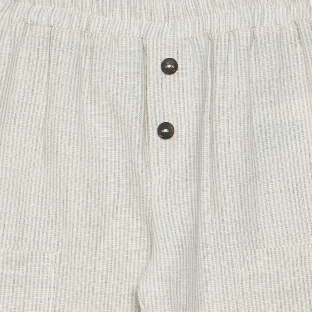 Viste a tu bebé con un toque de estilo clásico y comodidad con nuestro pantalón de diseño de rayas. Los botones frontales en contraste y las bolsas en costados añaden un toque encantador, mientras que el elástico en la cintura garantiza un ajuste cómodo para jugar y explorar