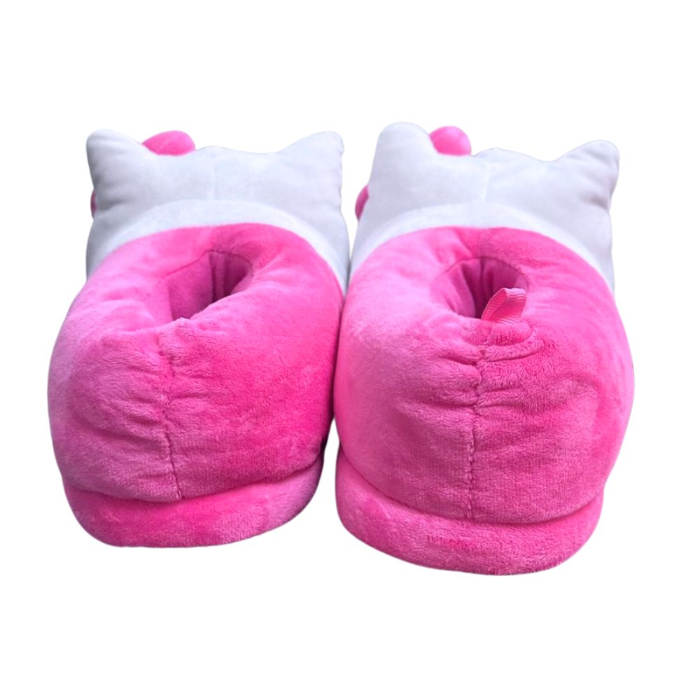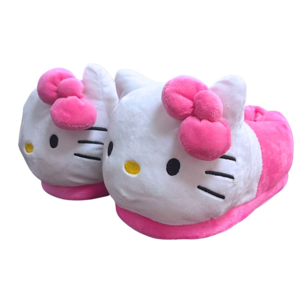 Pantuflas Hello Kitty con detalles bordados y acabado peluche que brinda suavidad y confort. Suela ancha para caminar segura en casa y un diseño adorable que complementa tu look relajado.