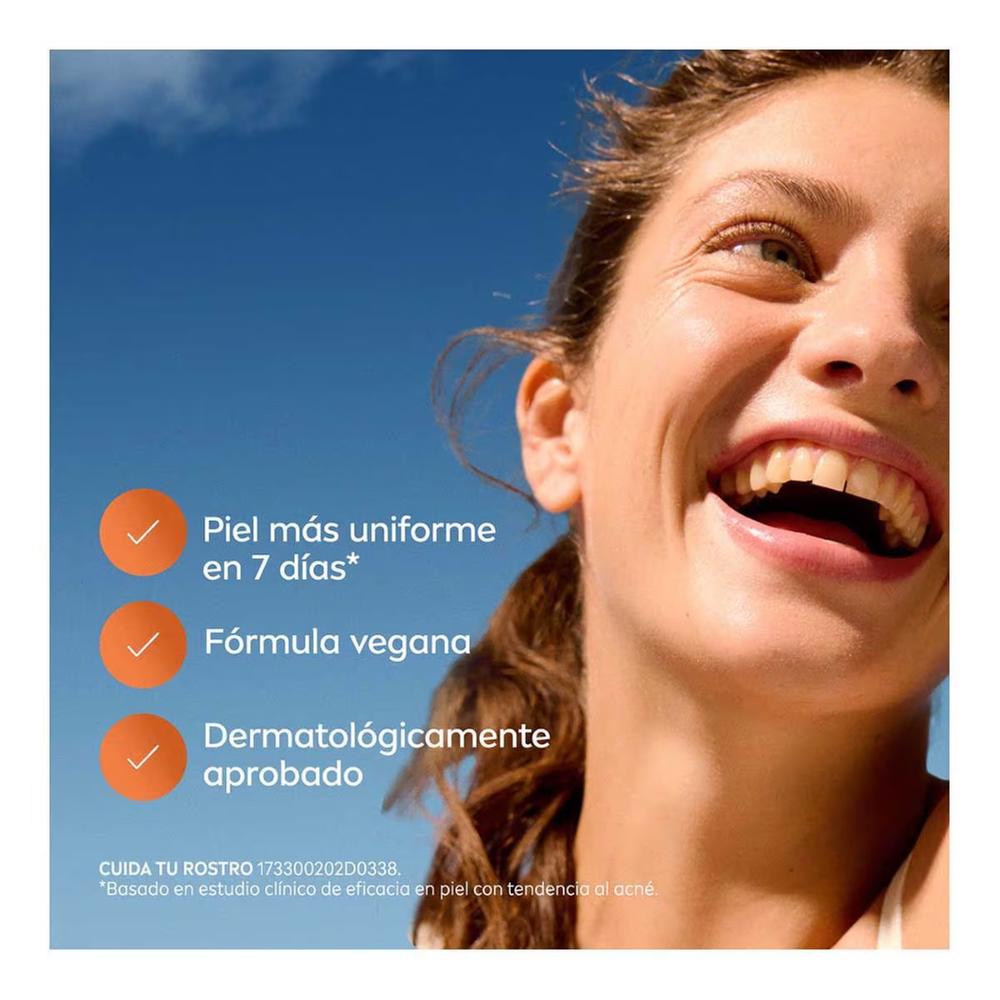 Atributos: Contenido 40 ml Ayuda en el proceso de renovación natural de la piel Reduce eficazmente los poros y suaviza la piel Disminuye las imperfecciones y previene su reaparición Para piel con tendencia al acné Piel más uniforme en 7 días Fórmula vegana Dermatológicamente aprobado