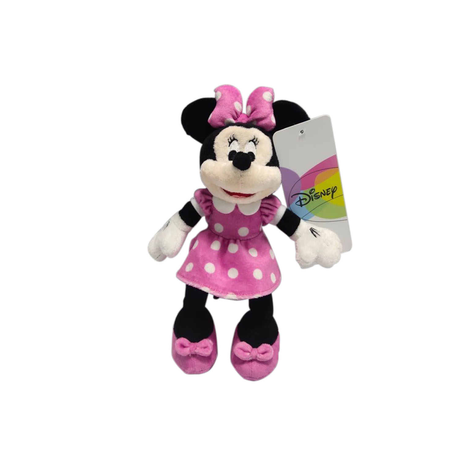 Tus pequeñas adorarán este maravilloso Peluche de Minnie Mouse, que siempre estará listo para jugar a su lado. La simpática ratoncita de Disney luce un bonito moño y vestido color rosa con lunares blancos, así como maravillosos detalles bordados. Tiene una medida de 35cm y cuerpo blando que lo vuelven perfecto para querer dormir juntos, abrazarlo en todo momento o decorar tu habitación.