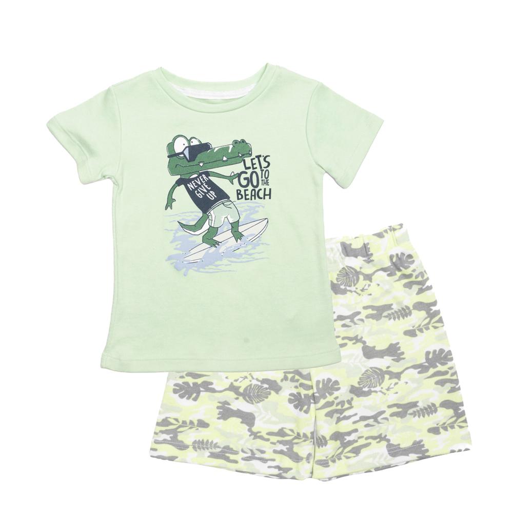 • Pijama Fantastic Bebé Playera Con Diseño Cocodrilo Playero Con Short Estampado