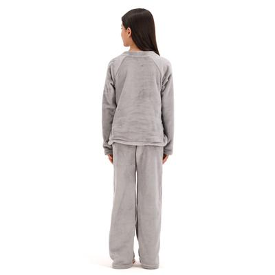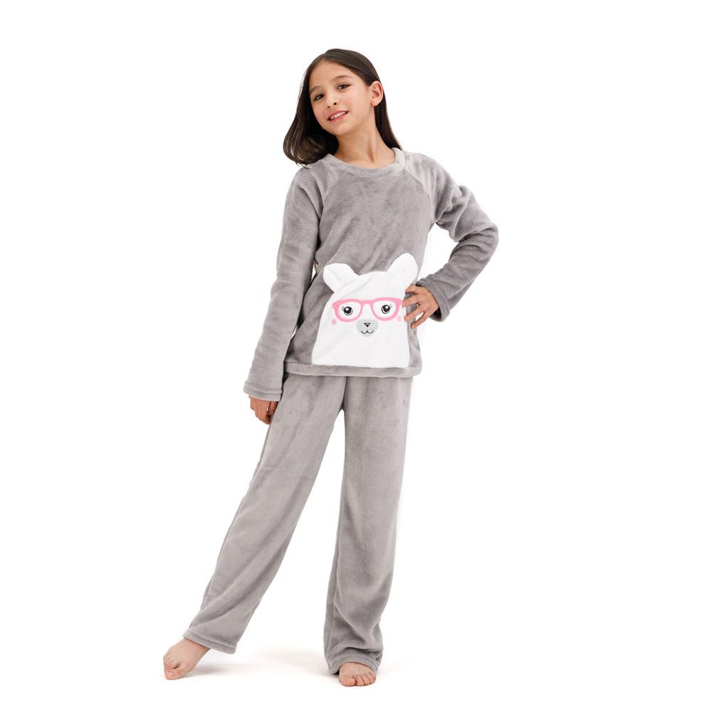 Pijama para niña compuesto por sudadera y pantalón de diseño liso, ideal para brindar comodidad y estilo durante el descanso. La sudadera con cuello redondo y ajuste en puños ofrece calidez y suavidad, mientras que el pantalón con cintura elástica permite libertad de movimiento. Una prenda versátil y práctica que combina confort y simplicidad.