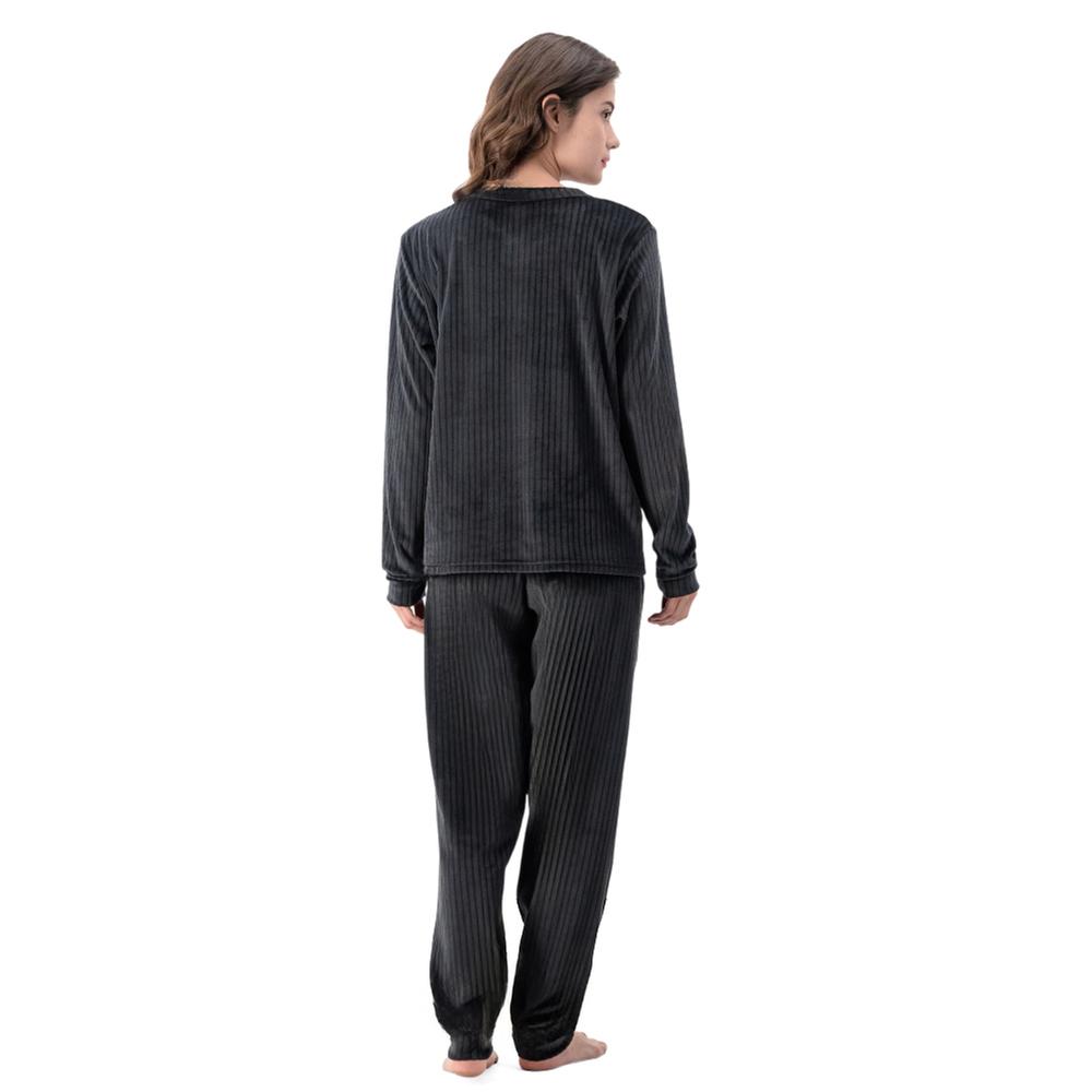 Estilo y calidez. Este set incluye una sudadera de manga larga y cuello V y un pantalón con elástico en cintura, ideal para los días frescos.