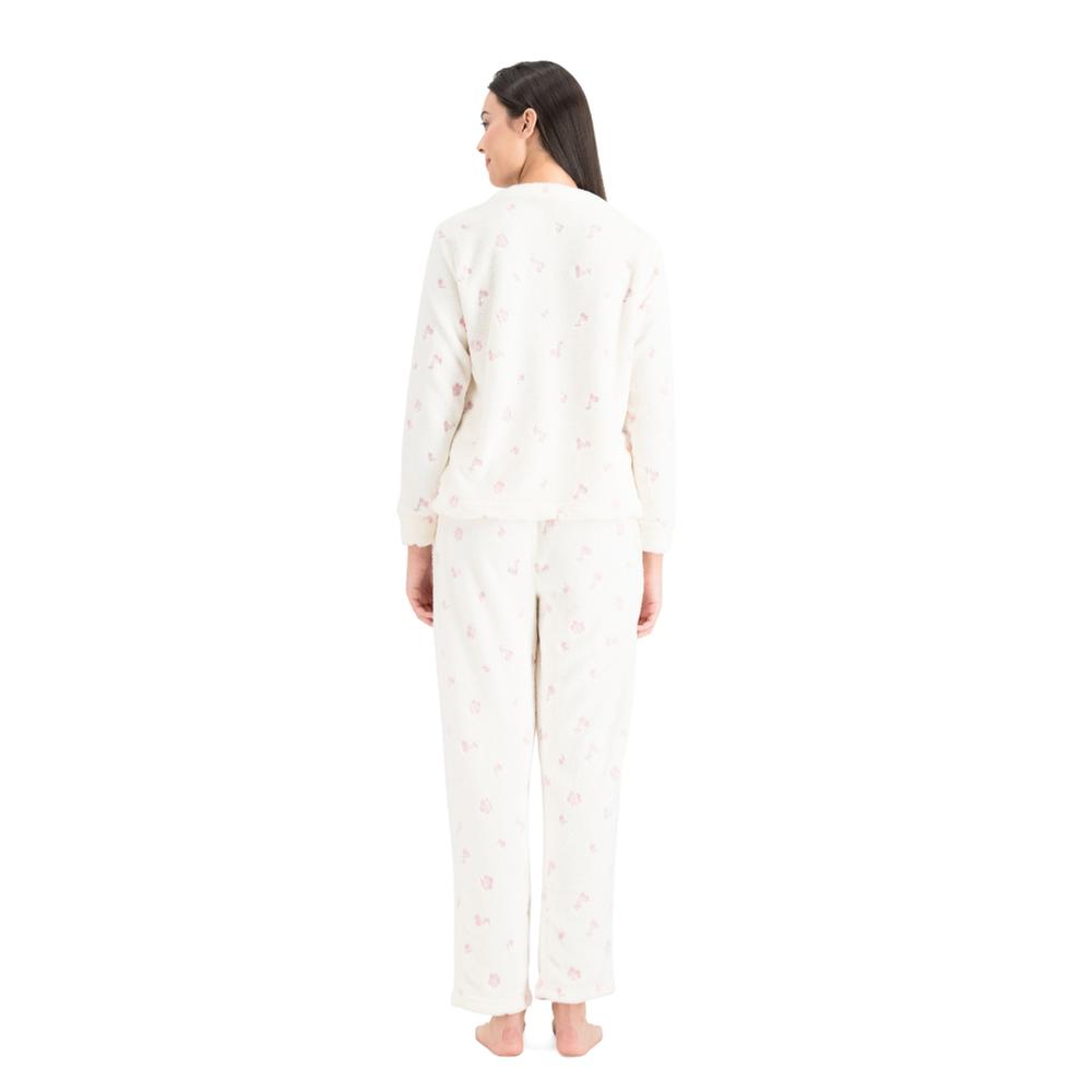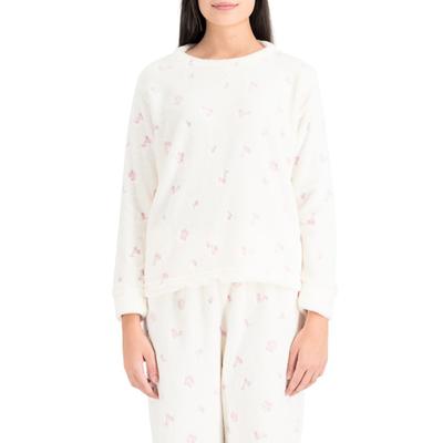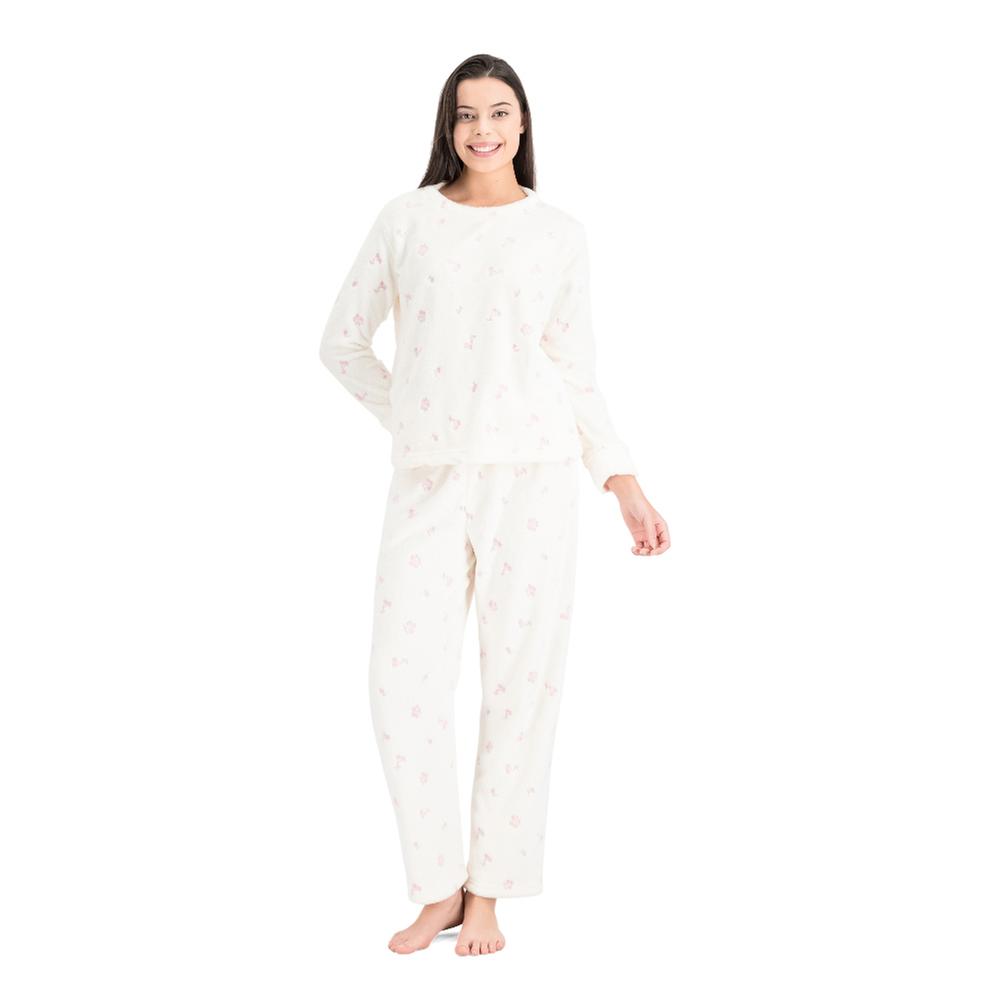 Esta pijama para mujer combina comodidad y estilo con un diseño encantador de cerezas que aporta frescura y diversión al descanso. La playera de manga larga y cuello redondo ofrece calidez y suavidad, mientras que el pantalón con cintura elástica garantiza un ajuste cómodo durante toda la noche. Perfecta para disfrutar de momentos relajados en casa con un toque alegre y femenino.
